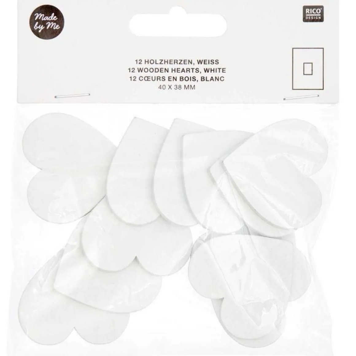 12 coeurs en bois blanc – grand 40 mm