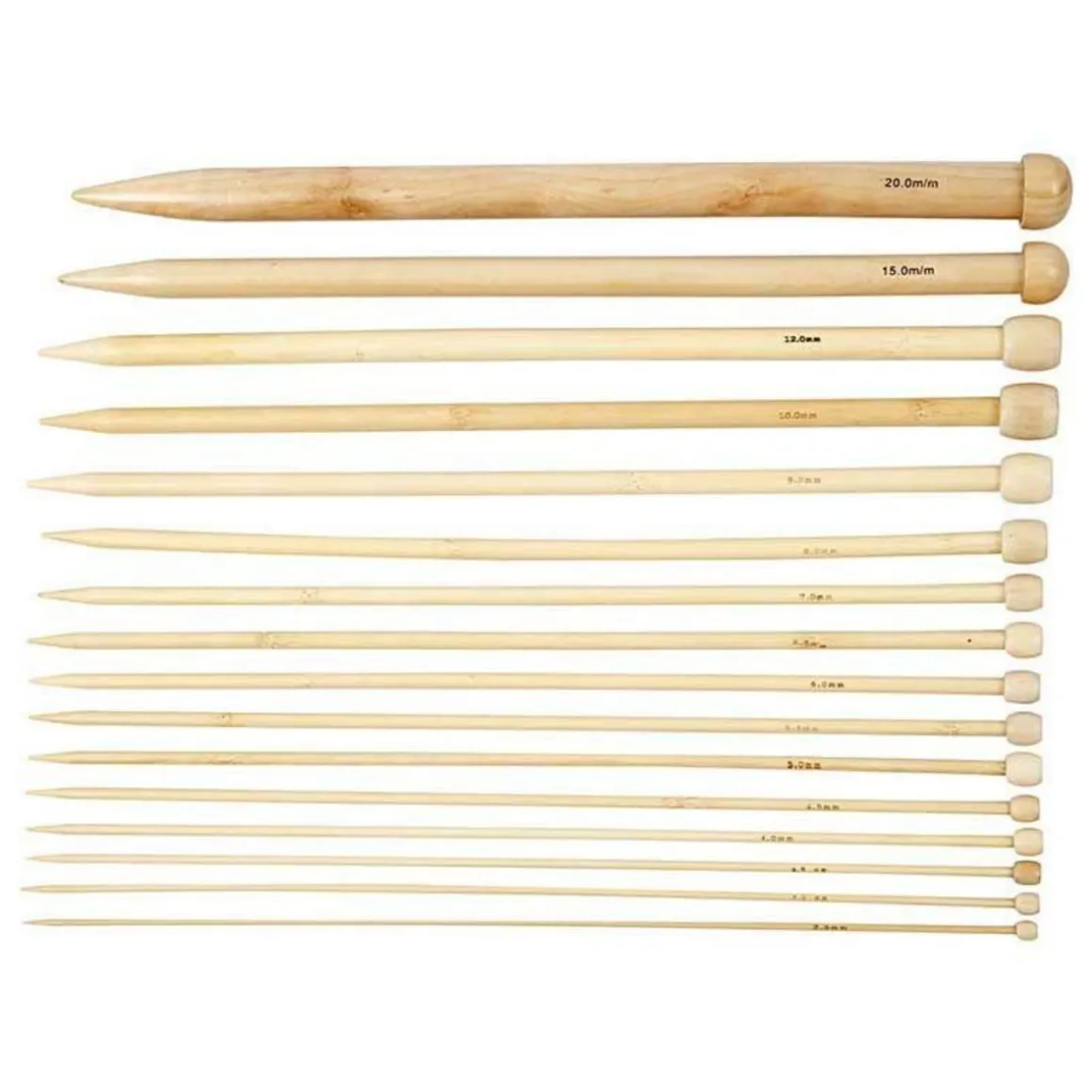 16 aiguilles à tricoter en bois 2,5-20 mm x 35 cm