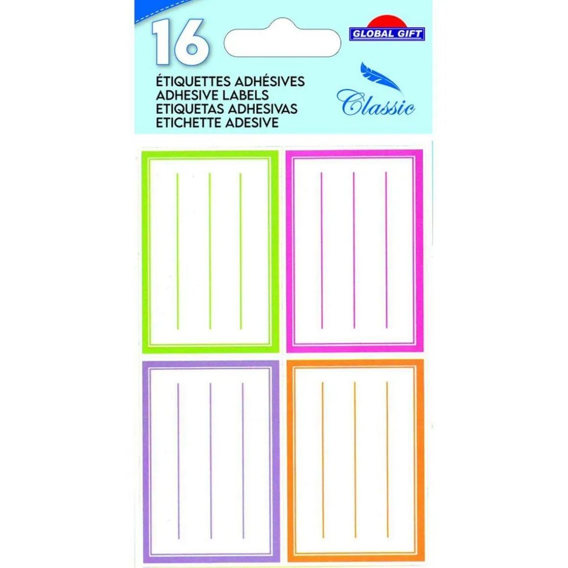 16 étiquettes adhésives scolaires – Rectangles 4 couleurs pastel