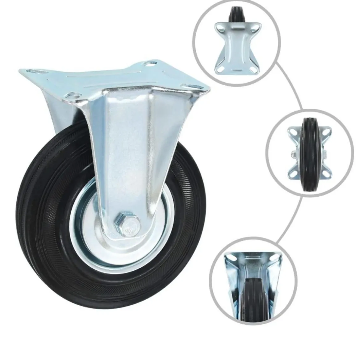 Ces roulettes sont fabriquees en caoutchouc qui se distingue par une bonne resistance aux chocs et aux vibrations, permettant a ces roulettes de fonctionner en douceur et silencieusement. De plus, leurs surfaces douces protegent efficacement votre sol des egratignures. En outre, le cadre en fer zingue est hautement resistant a la rouille et ajoute ainsi a la robustesse et a la durabilite de la roulette pivotante. Chaque roulette pivotante a une capacite de charge maximale de 100 kg.