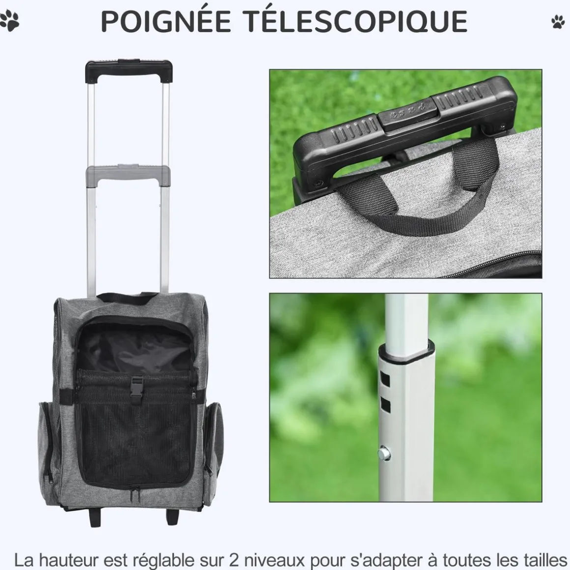 – Matériaux principaux : tissu oxford, alliage d’aluminium et acier