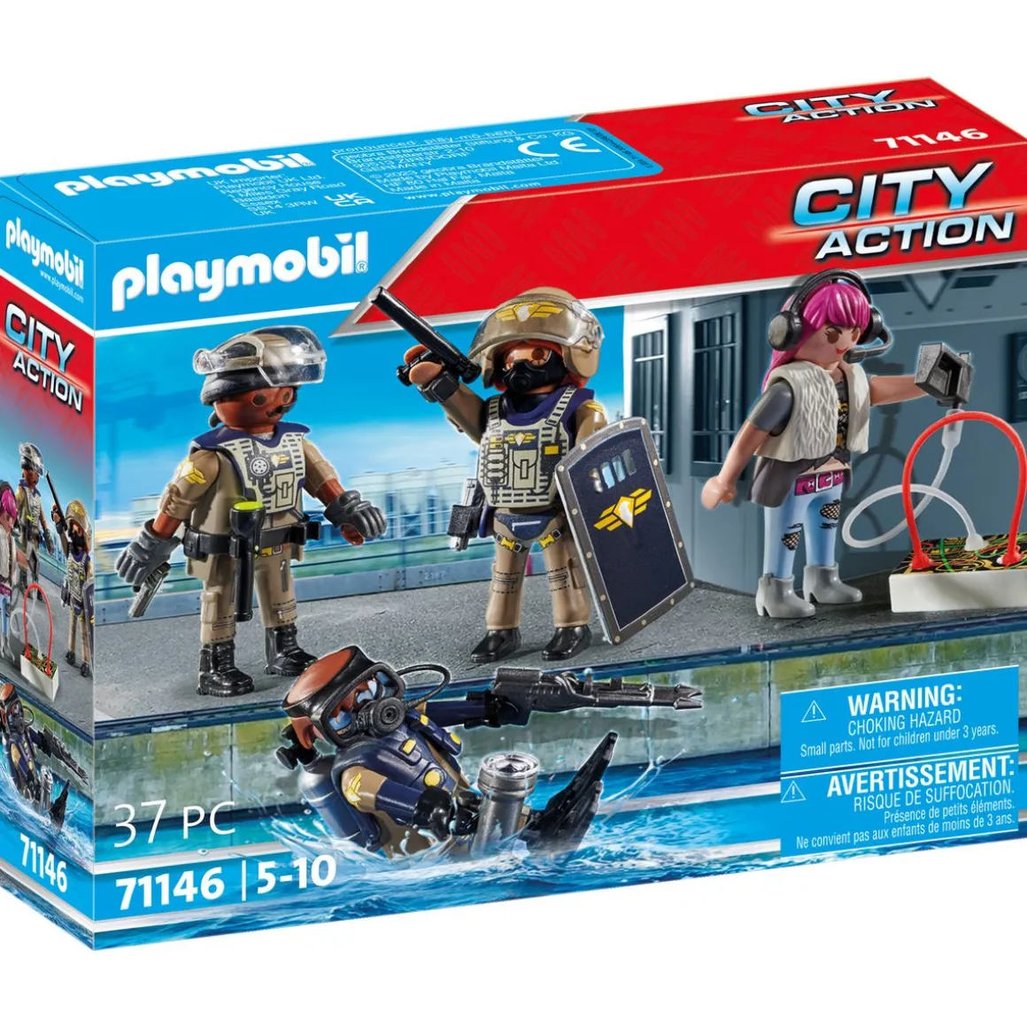 Playmobil City Action 71146 Equipe forces spéciales avec bandit – Playmobil. Achat et vente de jouets, jeux de société, produits de puériculture. Découvrez les Univers Playmobil, Légo, FisherPrice, Vtech ainsi que les grandes marques de puériculture : , , Mac Laren, …
