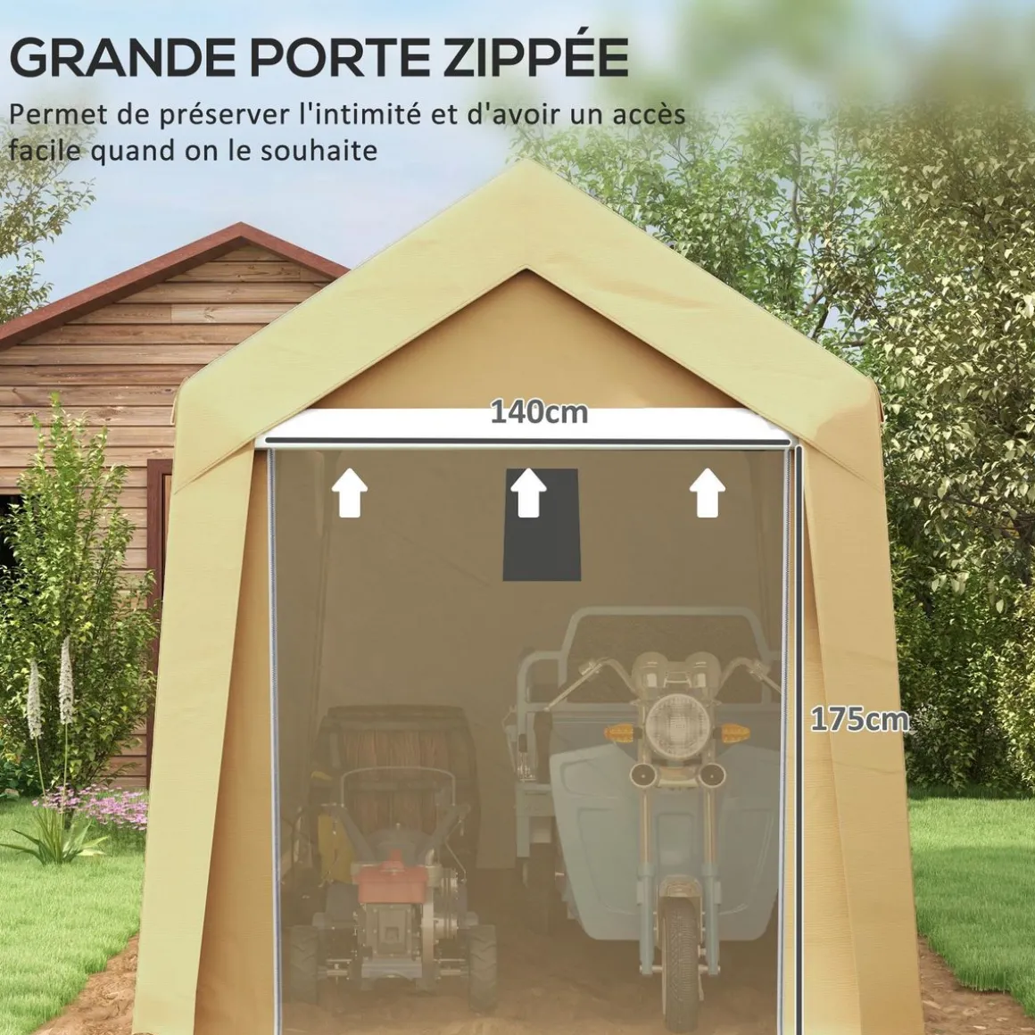 – Cette cabane de jardin permet de ranger facilement des vélos, motos ou outils de jardin