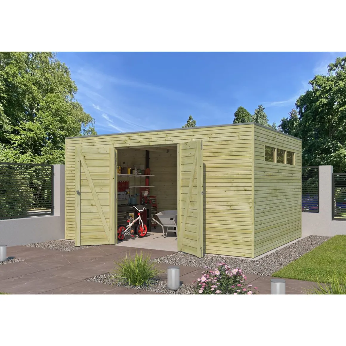 L’installation d’une annexe extérieure dans un jardin (abri de jardin, carport, pergola, barbecue en pierre, etc) ou d’une terrasse peut nécessiter une déclaration préalable de travaux ou un permis de construire. Renseignez vous auprès de votre mairie.