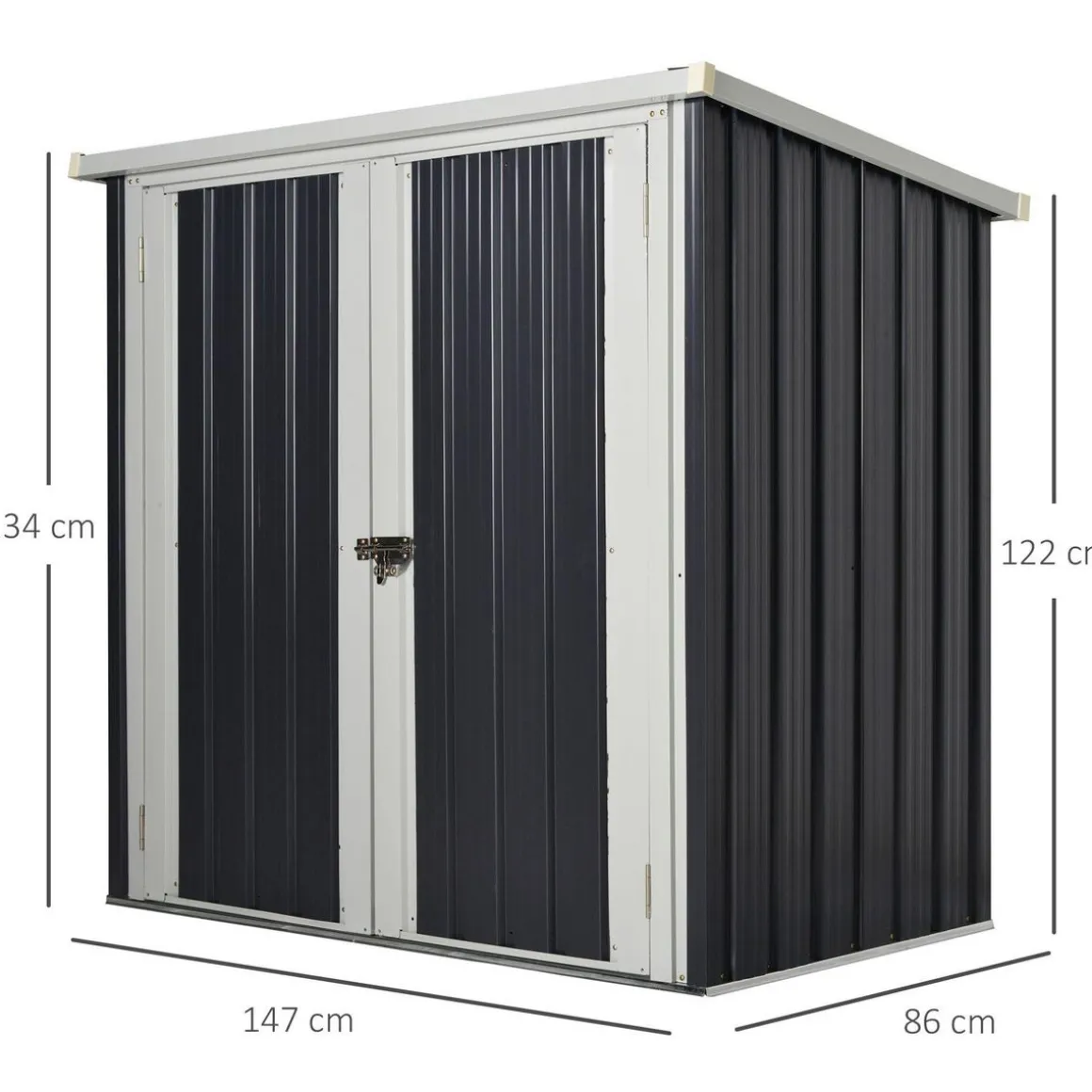 – Double porte avec loquet pour un accès facile et un rangement sûr (possibilité de poser un cadenas)