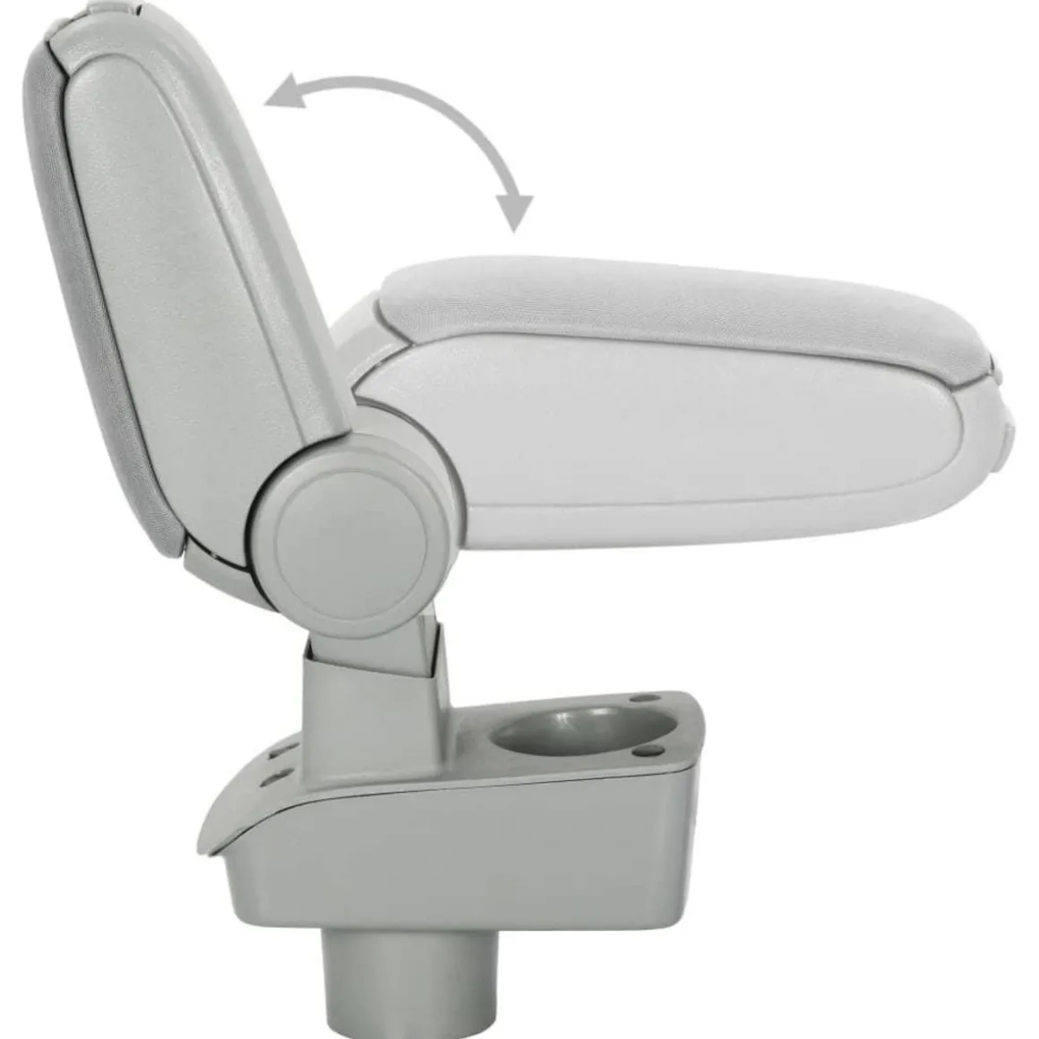 L’accoudoir se compose d’une base en plastique robuste et d’un compartiment a console avec un couvercle rembourre sur lequel vous pouvez reposer confortablement votre bras.
