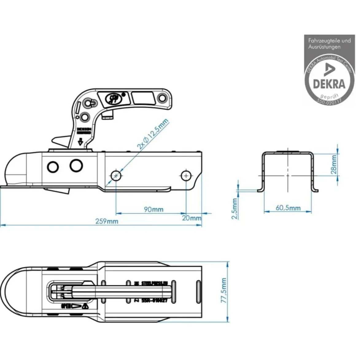 Grace a sa finition en plaque zinc, il est resistant a la rouille et tres durable. Cet accouplement de boule est approprie pour les remorques pesant jusqu’a 750 kg.