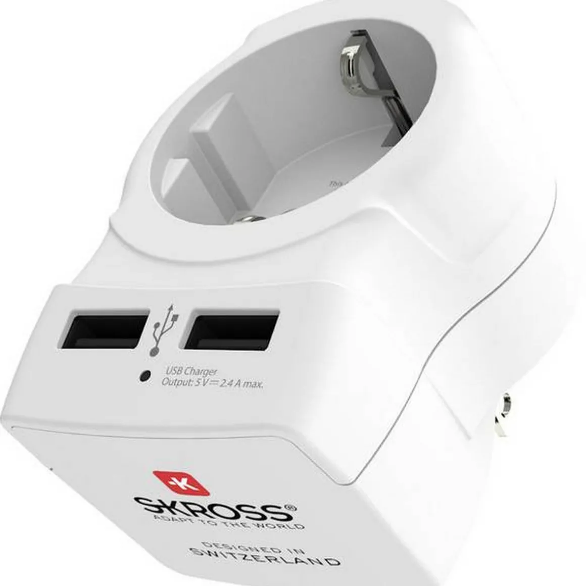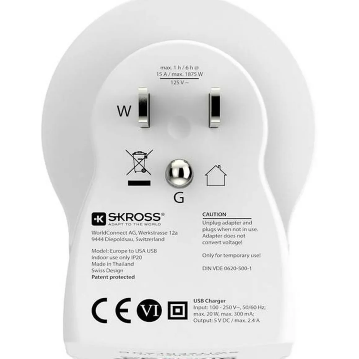 – SKROSS Adaptateur secteur de voyage Europe vers USA + Double chargeur USB – Blanc-