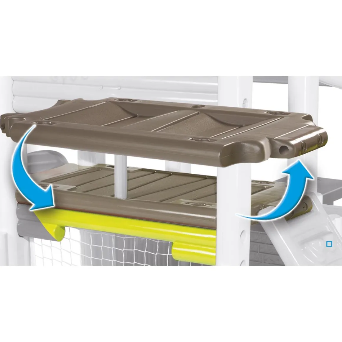 Vos enfants rêvent d’une aire de jeux dans le jardin ? Adoptez vite ce Fun center de Smoby. C’est une aire de jeux idéale pour jouer et se dépenser, les enfants vont adorer l’avoir à disposition afin d’y jouer toute la journée. L’aire de jeu Fun Center se divise en deux parties : Le coin maison comprenant un portillon, un coin repas et un toit tissu imprimé ainsi qu’un espace multi-sport composé d’un toboggan, 1 panier de basket, 1 cage de foot et un mur d’escalade !