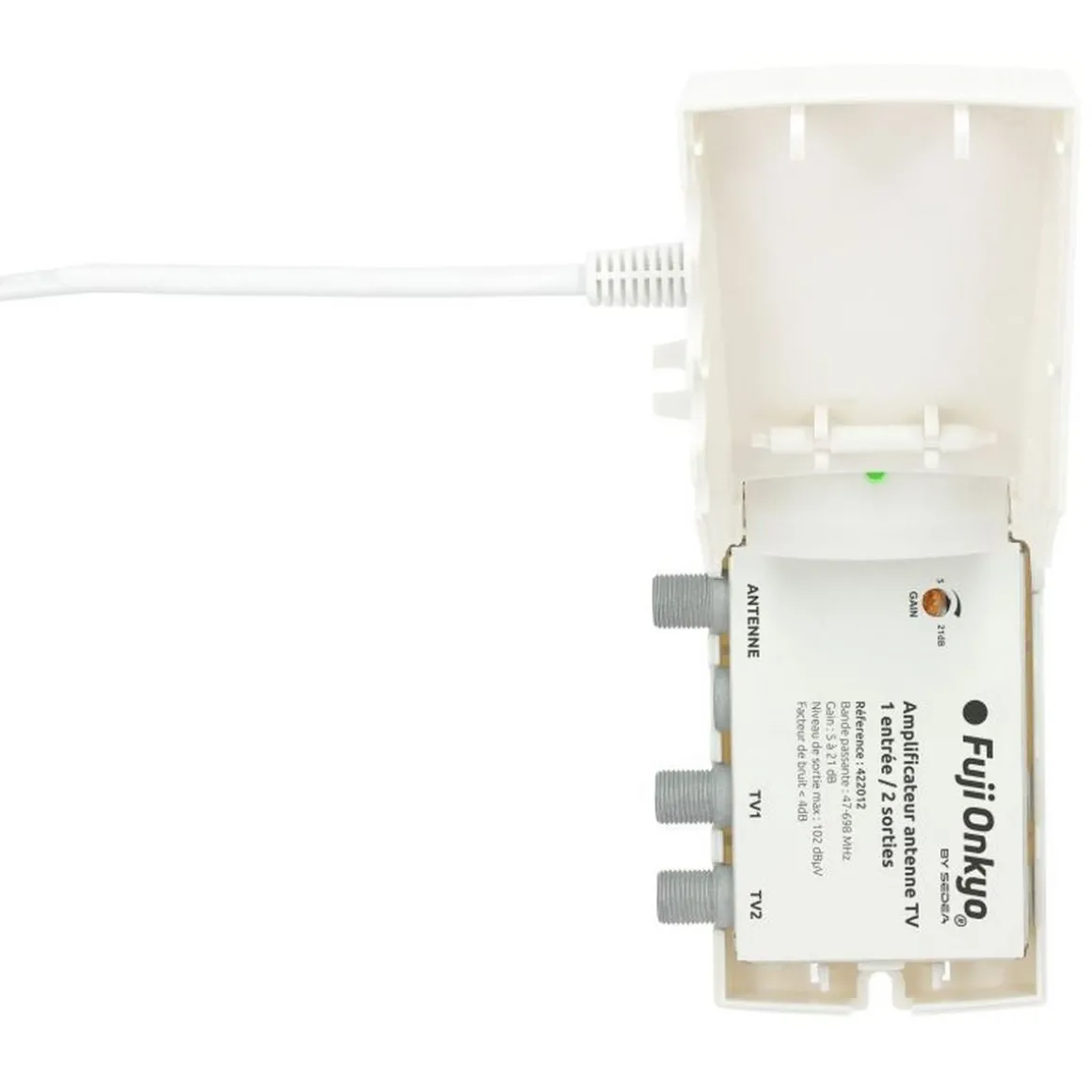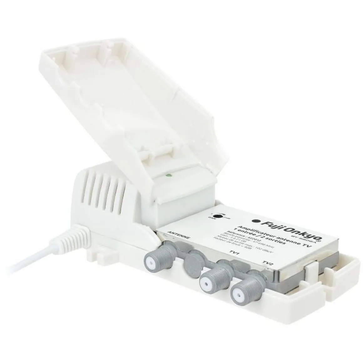 FUJIONKYO Amplificateur antenne TV intérieur – 1 entrée/2 sorties – 422012 – Blanc