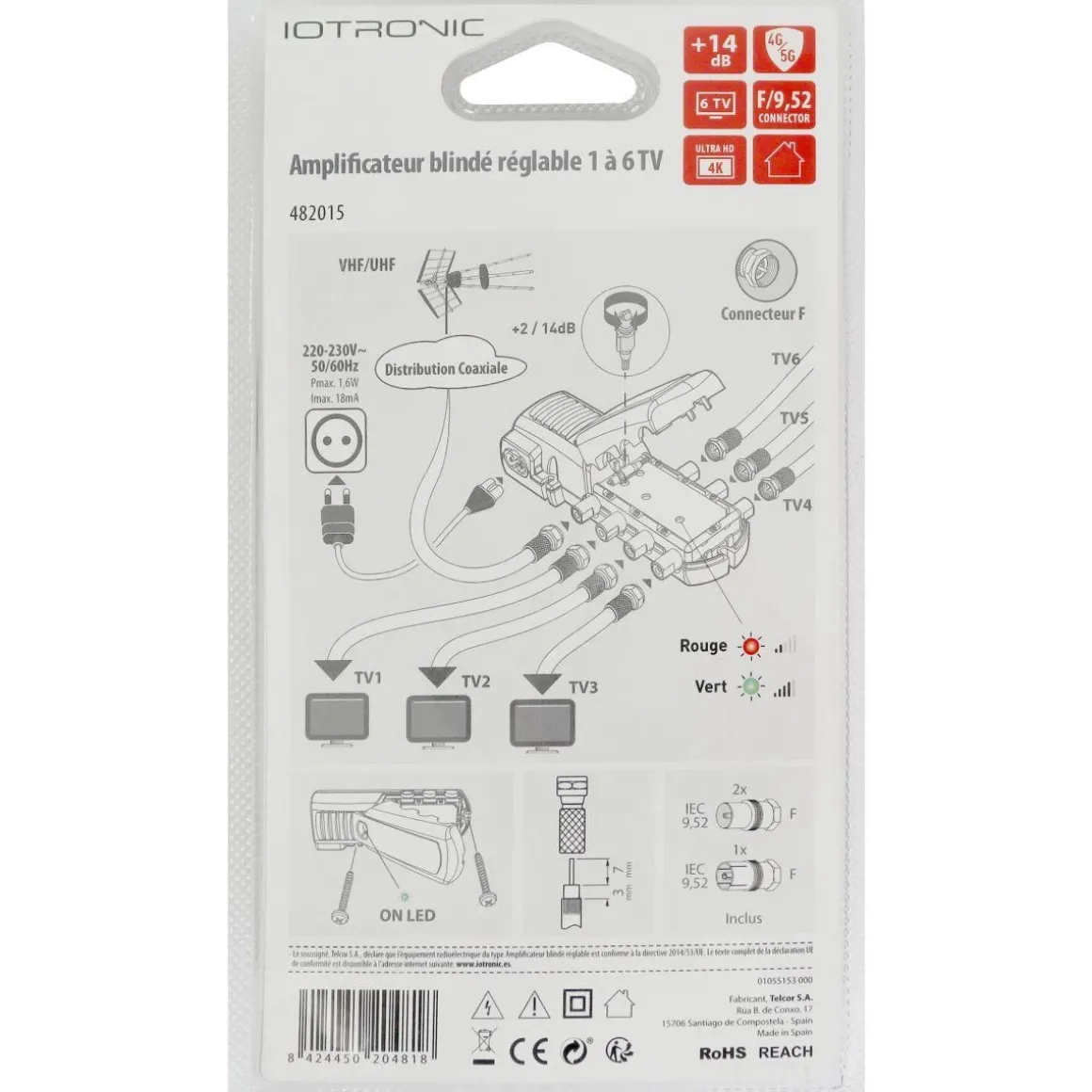 Amplificateur TV intérieur 6 TV 14db réglable avec LED