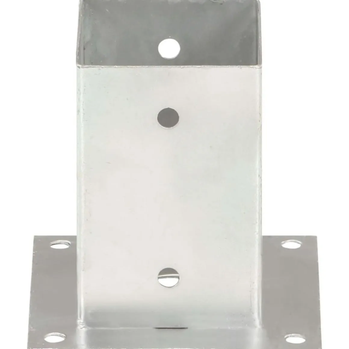 Ces ancrages de poteaux en metal galvanise sont resistants a la rouille. Ces ancrages peuvent etre visses au sol, ce qui permet de maintenir votre structure tubulaire en acier en place. Ils sont adaptes aux surfaces dures comme le beton et le bois.