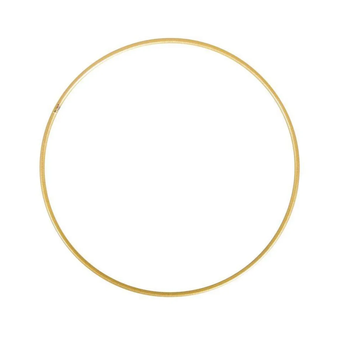 A suspendre, pour réaliser de belles décorations de Noël, y accrocher des décorations florales ou faire votre attrape-rêves personnalisé, cet anneau en métal doré de 20 centimètre de diamètre sera idéal. Matière : métal doré Dimensions : ø 20 cm