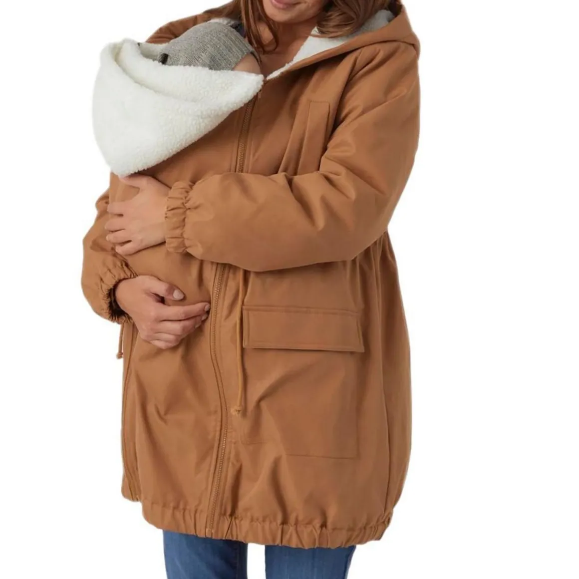 Attention : Sachez que ce produit ne fournit pas de soutien au bébé, et il doit être porté par-dessus une écharpe de portage ou un porte-bébé qui répond à toutes les exigences légales en matière de sécurité. Assurez-vous en permanence que les voies respiratoires de votre enfant restent dégagées et qu’il n’a pas trop chaud