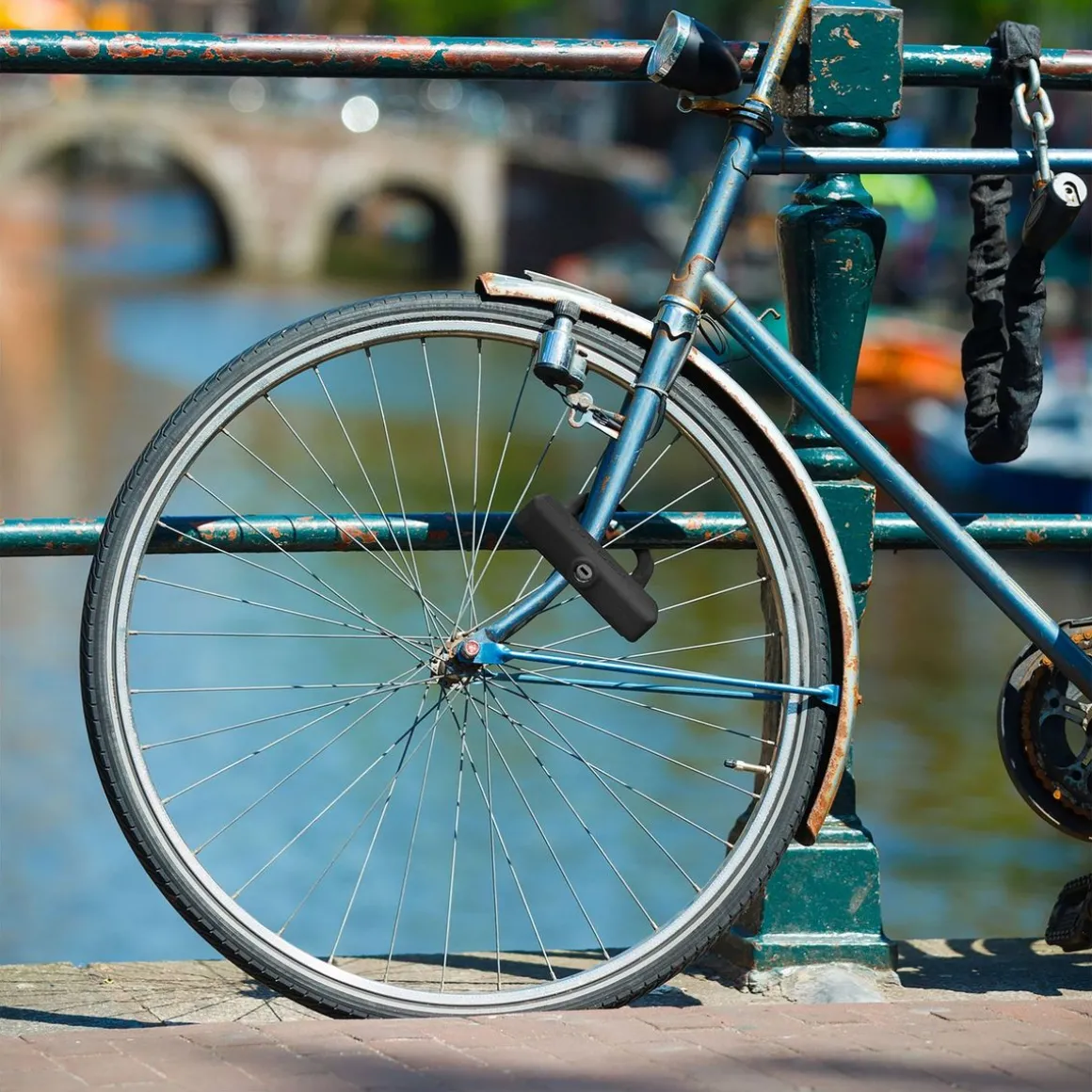 Vous pouvez ainsi l’attacher à la roue de votre vélo et à un poteau afin de la bloquer et sécuriser celui-ci.