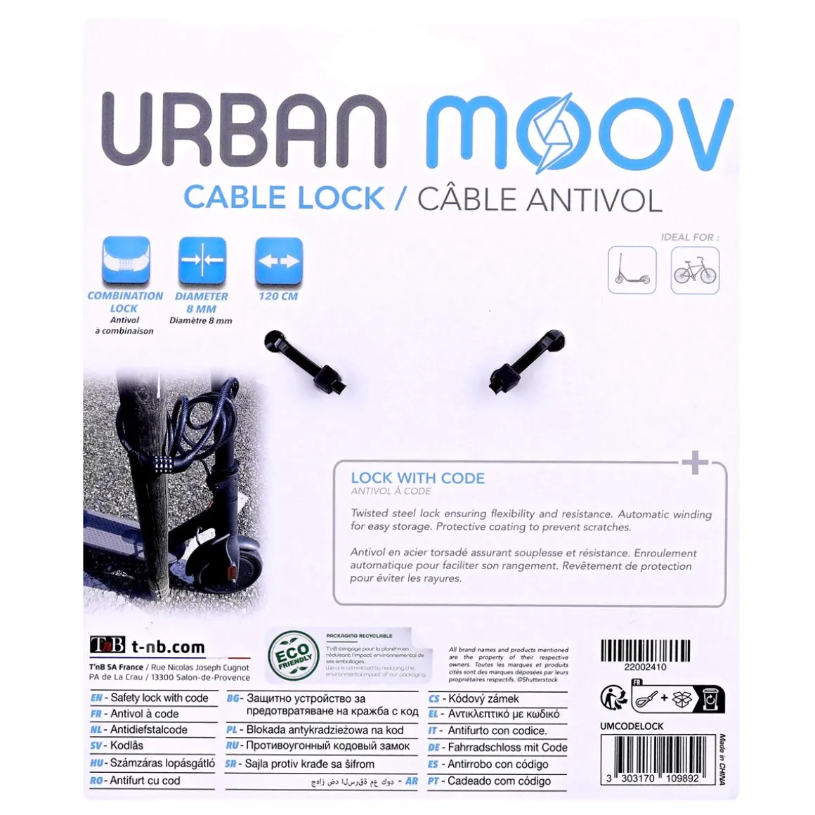 L’URBAN MOOV Antivol spirale à code pour vélo et trottinette est un antivol pratique et facile à utiliser pour protéger votre vélo ou votre trottinette électrique contre le vol. Voici quelques caractéristiques clés de ce modèle :