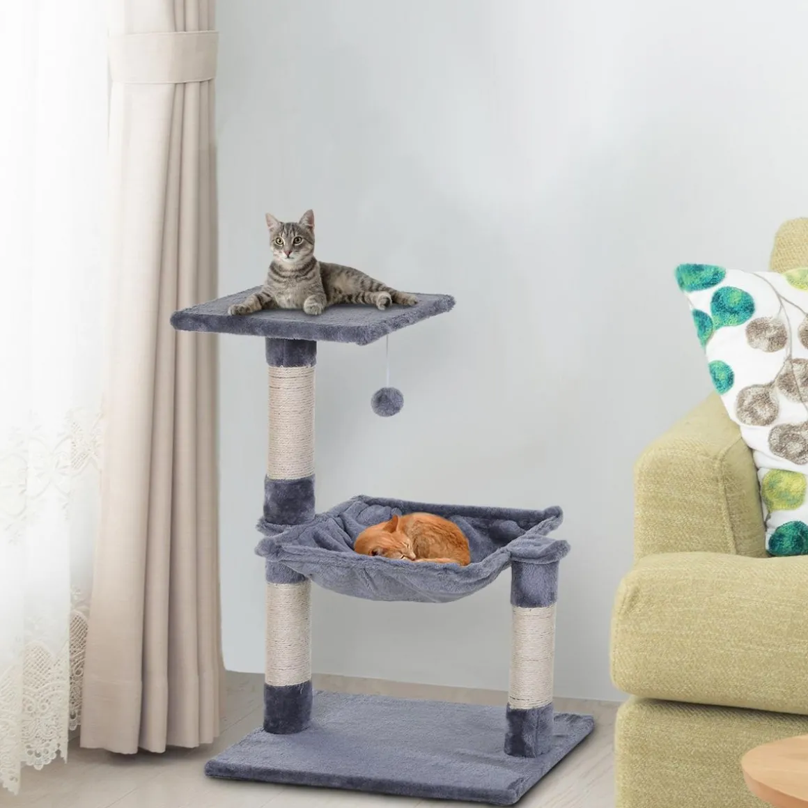 – Equipements multiples : plateforme, 3 griffoirs, grattoirs, hamac et jeu de boule suspendue