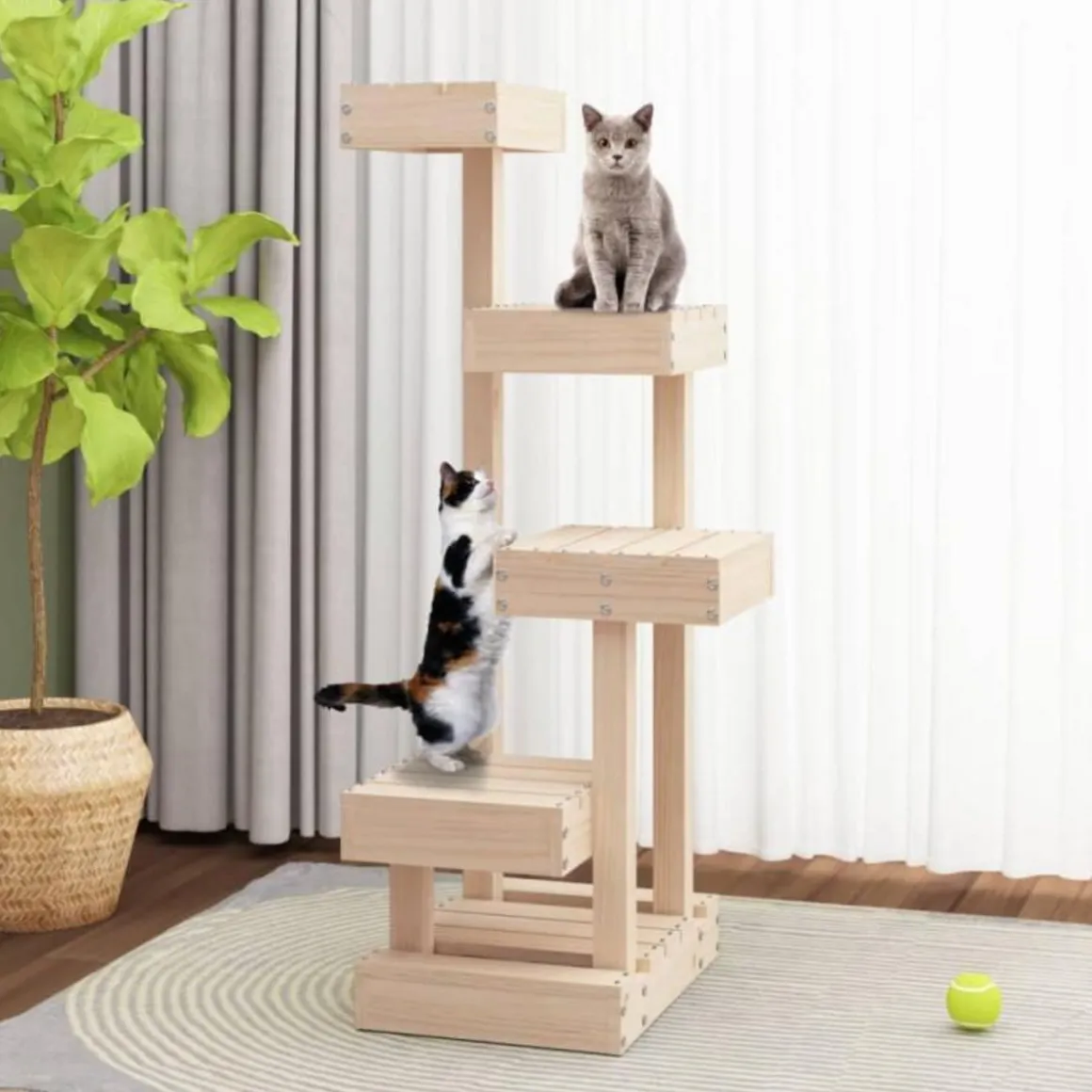 Gardez vos adorables chats divertis sans fin avec cet arbre à chat pratique ! Arbre à chat pratique : le meuble pour chat à plusieurs niveaux est conçu avec 4 plates-formes, offrant un endroit parfait pour que vos chats grimpent, se perchent et se détendent.Matériau durable : le bois de pin massif est un matériau naturel magnifique. Le bois de pin a un grain droit et les nœuds donnent au matériau son aspect caractéristique et rustique.Cadre robuste : le cadre en bois de l’arbre à chat assure robustesse et stabilité. Remarque :Chaque produit est livré avec un manuel de montage dans la boîte pour un montage facile.