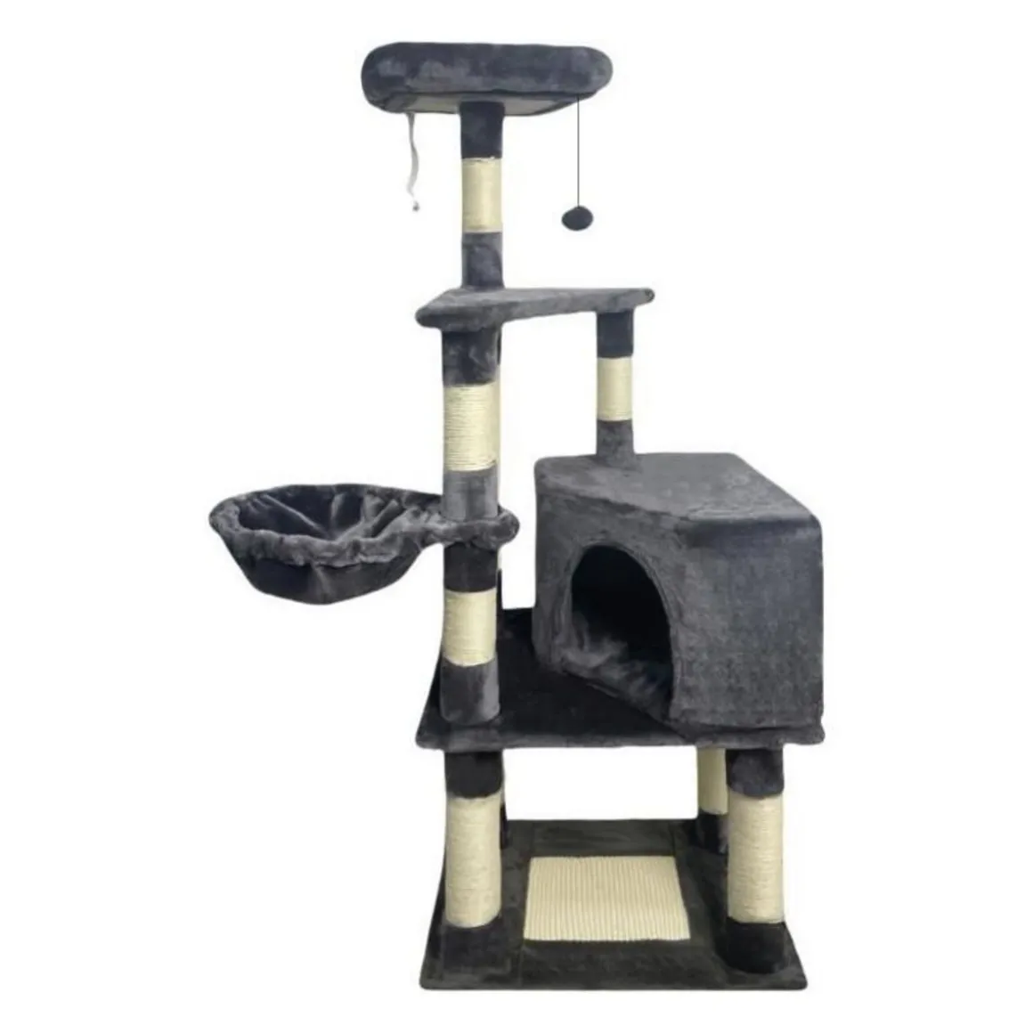 Cet arbre a chat moyen de 55 x 40 x 138 cm en gris foncé offre un espace de jeu et de repos idéal avec 3 plateformes, 1 perchoir, 1 niche et des poteaux a griffer en sisal. Conçu pour accueillir jusqu’a 3 chats, il est durable et confortable, parfait pour l’intérieur.