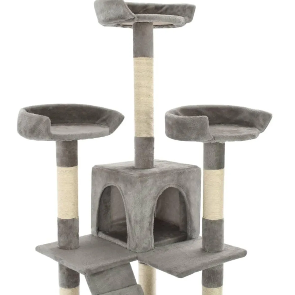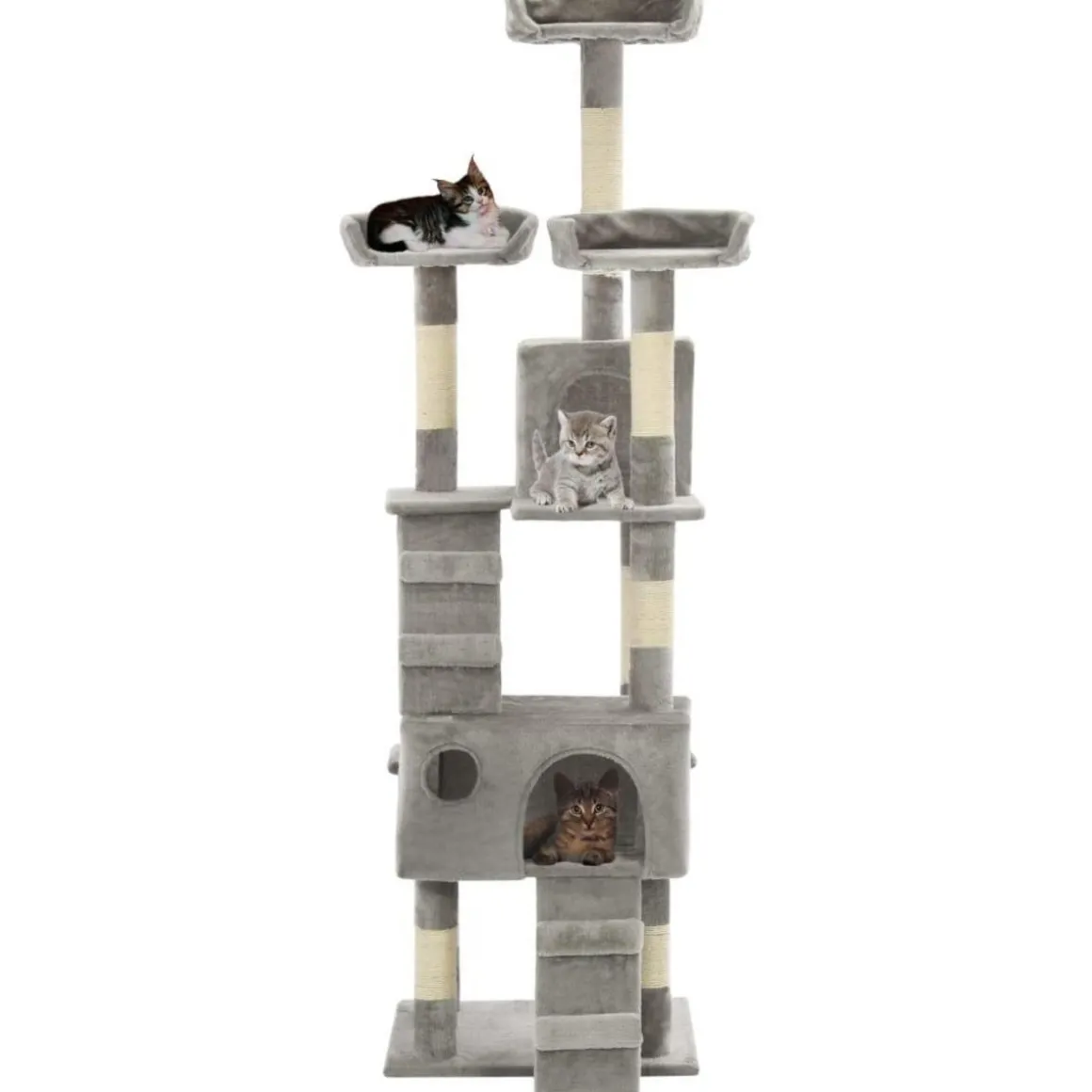 Vos amis felins peuvent aiguiser leurs griffes sur les poteaux a gratter enveloppes dans une corde de sisal, ce qui leur fournit un bon debouche pour leur instinct de gratter. Ils apprecieront egalement de se poursuivre en sautant dans ce centre de jeu amusant. Quand ils se seront suffisamment amuses, vos petits amis adoreront se reposer sur les plates-formes superieures ou ils auront une meilleure vue. Ils peuvent egalement se cacher dans les maisons confortables pour faire une sieste. Avec toutes ces fonctionnalites amusantes, cette tour pour chats deviendra le lieu de detente prefere de vos amis a quatre pattes ! L’arbre a chat est facile a assembler.