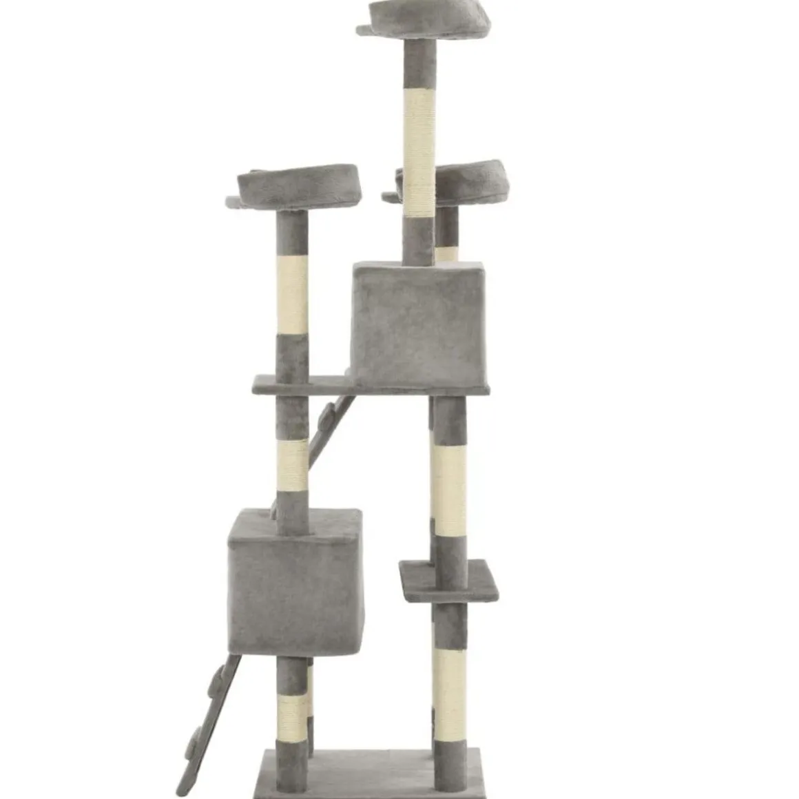 Donnez a vos amis felins le gout du luxe avec notre arbre a chat rempli de fonctionnalites ! Cette aire de jeu pour chats a plusieurs etages possede un cadre robuste recouvert de peluche douce et confortable et constitue le refuge parfait dans lequel vos chats peuvent se gratter, grimper, se percher, se cacher et se reposer.