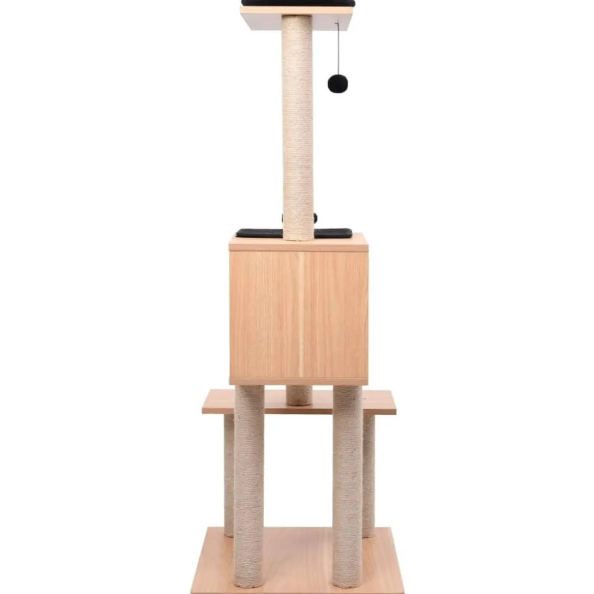 - Avec une maison, une balle suspendue, des grattoirs en jute, un perchoir et des espaces de detente