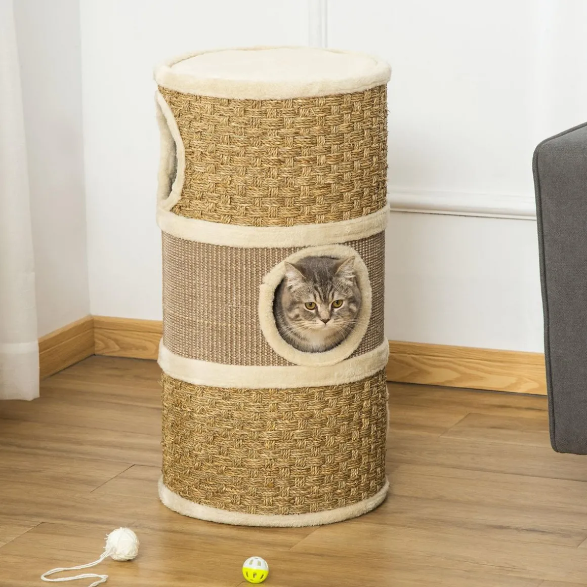 – Tour à griffer pour chat entièrement recouverte de sisal naturel et de cordes d’algues