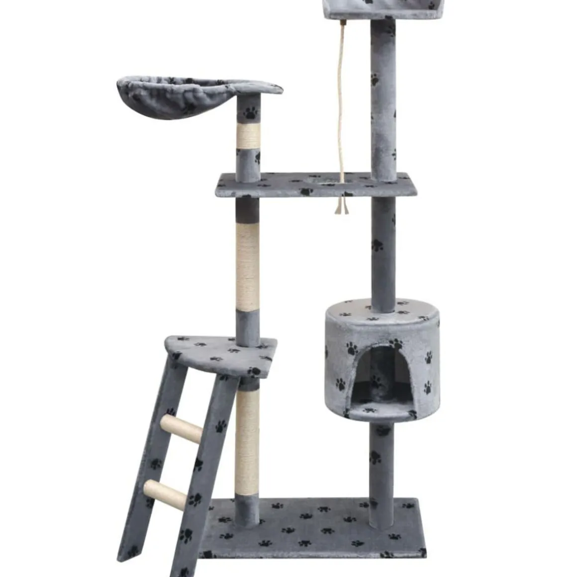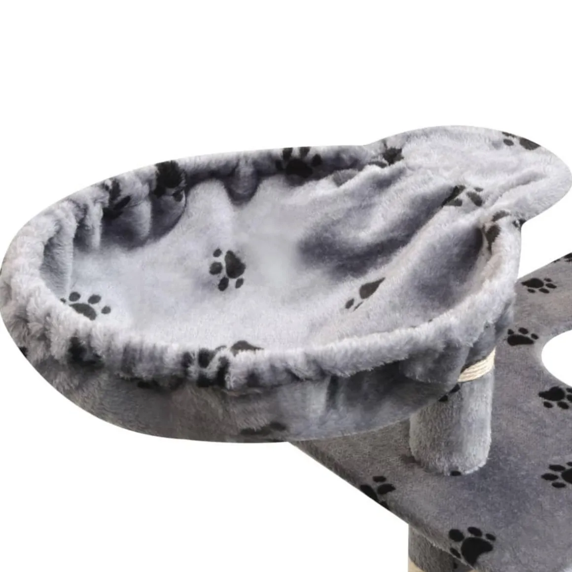 Vos amis felins peuvent aiguiser leurs griffes sur les griffoirs enroules dans des cordes en sisal, qui fournit une bonne pratique pour leurs instincts a gratter. Ils aimeront egalement courir apres l’autre tout en sautant de haut en bas dans ce centre de jeu amusant. Au-dessous de la plate-forme superieure, il y a un jouet de corde qui engagera vos chats curieux. Quand ils s’amusent suffisamment, vos petits amis adoreront se reposer sur les plates-formes superieures, ou ils auront une meilleure vue. Ils peuvent egalement se cacher dans la maison confortable pour faire une sieste ou se detendre sur le hamac douillet.