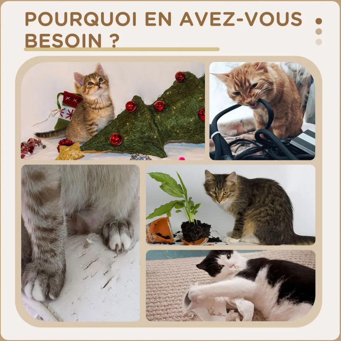 – Equipements multiples : griffoir en chanvre naturel, panier, plateforme d’observation (coussin inclus)