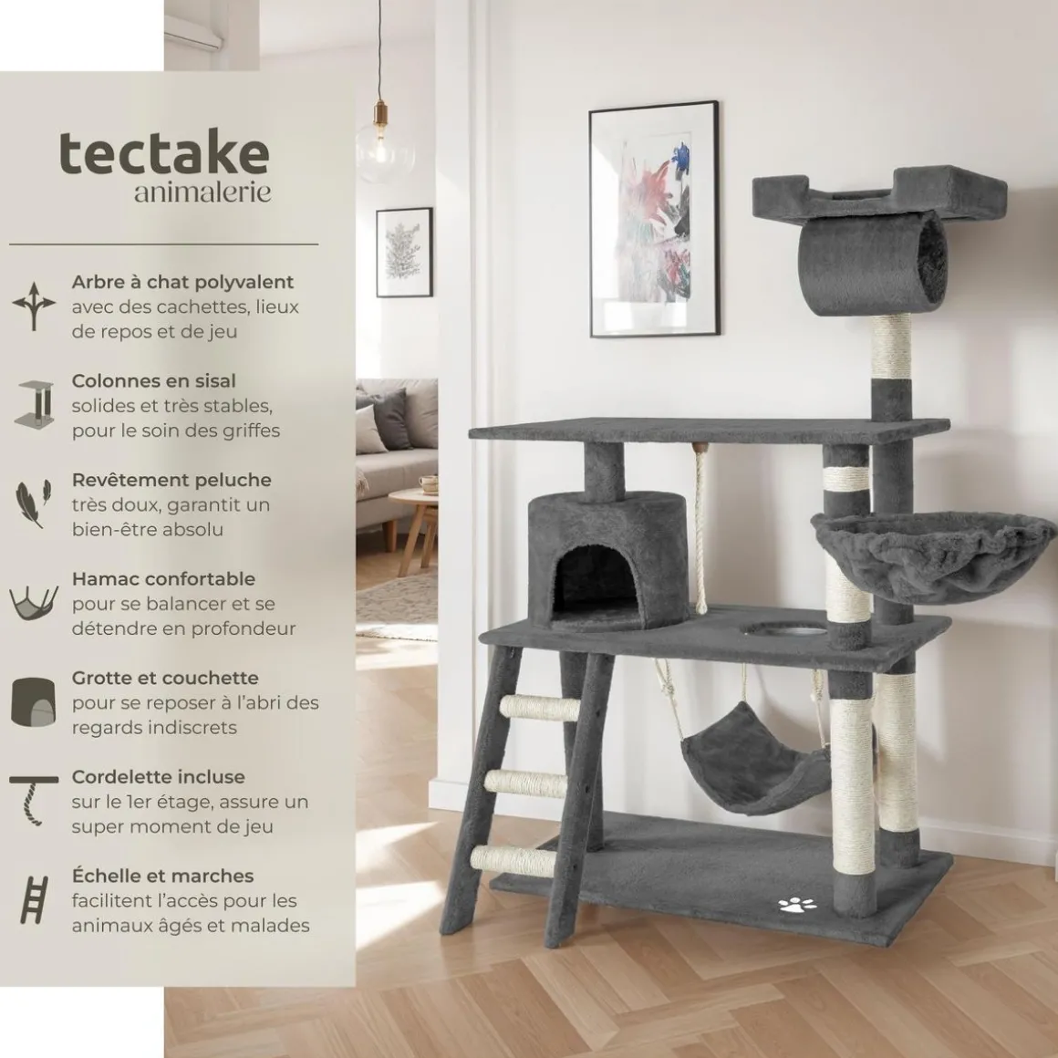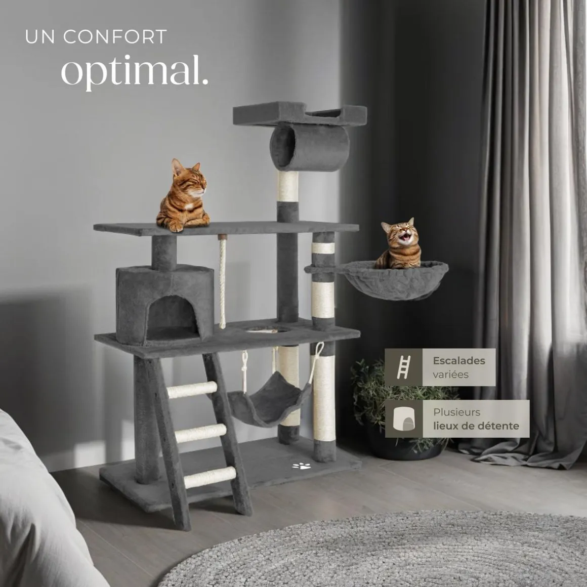 - Arbre à chat d’une grande stabilité pour un encombrement minimum.