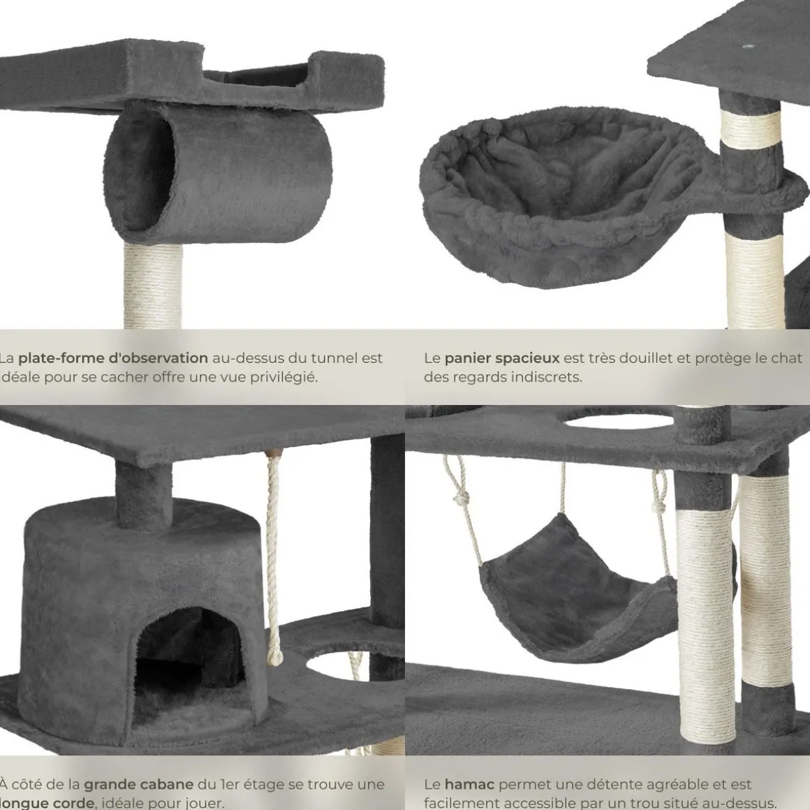- Les poteaux sont recouverts de corde en sisal pour permettre à votre chat de prendre soin de ses griffes.