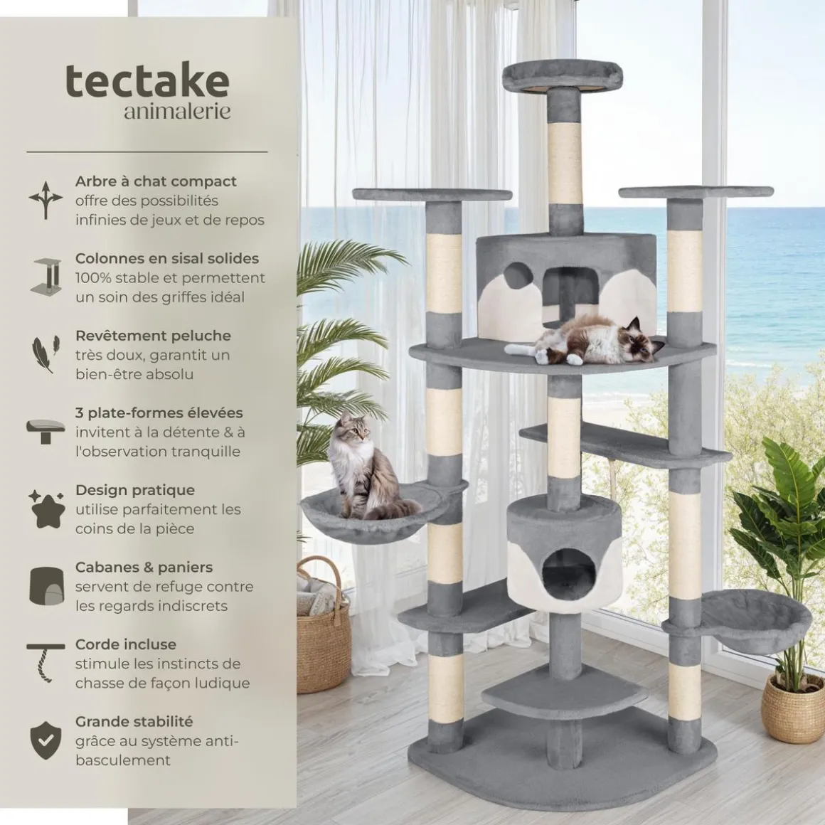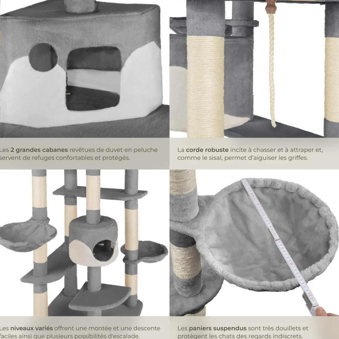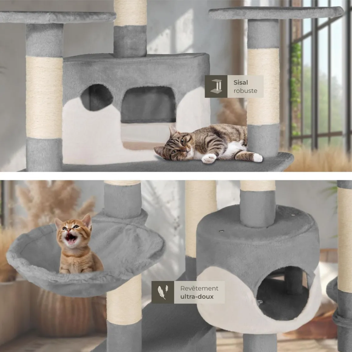 - L’arbre à chat se distingue par ses finitions de qualité et sa construction massive.