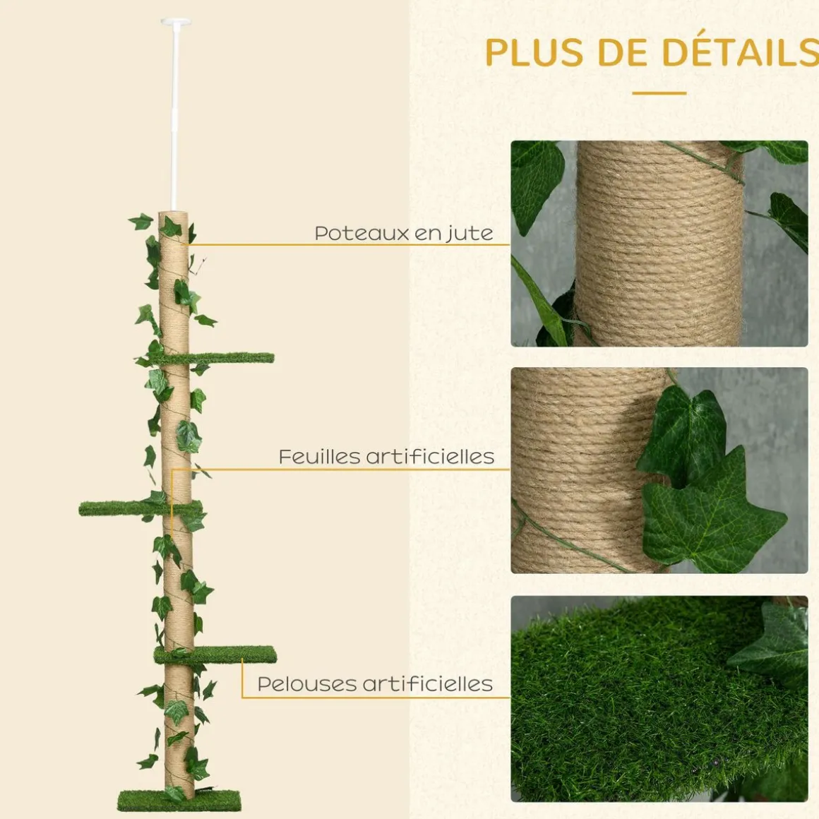 – Note : cet arbre de chat doit être fixé au plafond pour plus de sécurité. Conçu pour les plafonds faisant moins de 2,6 m de haut