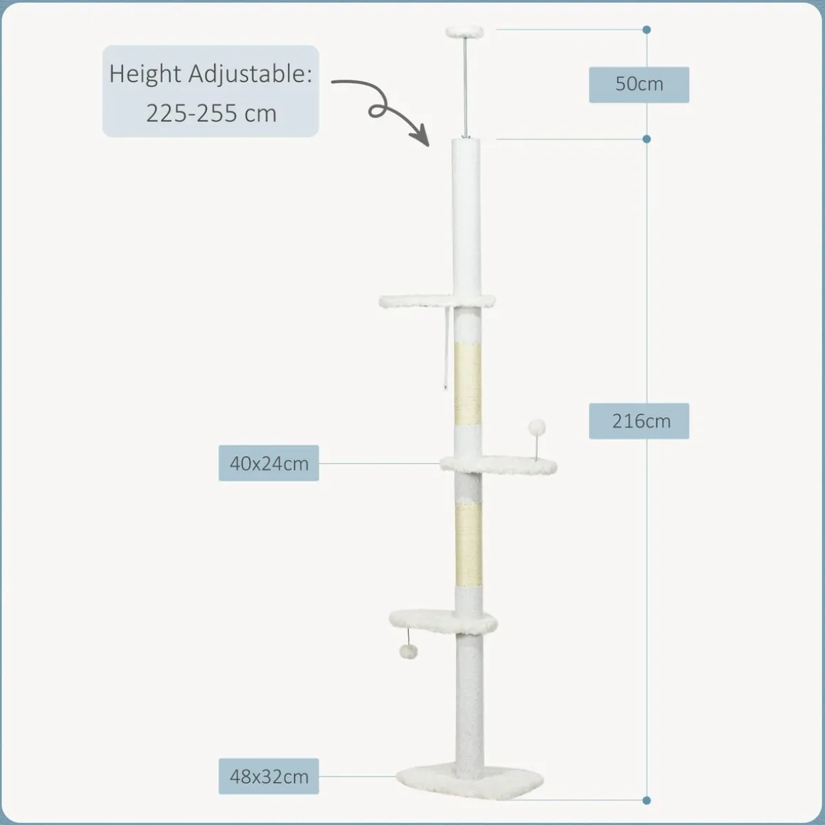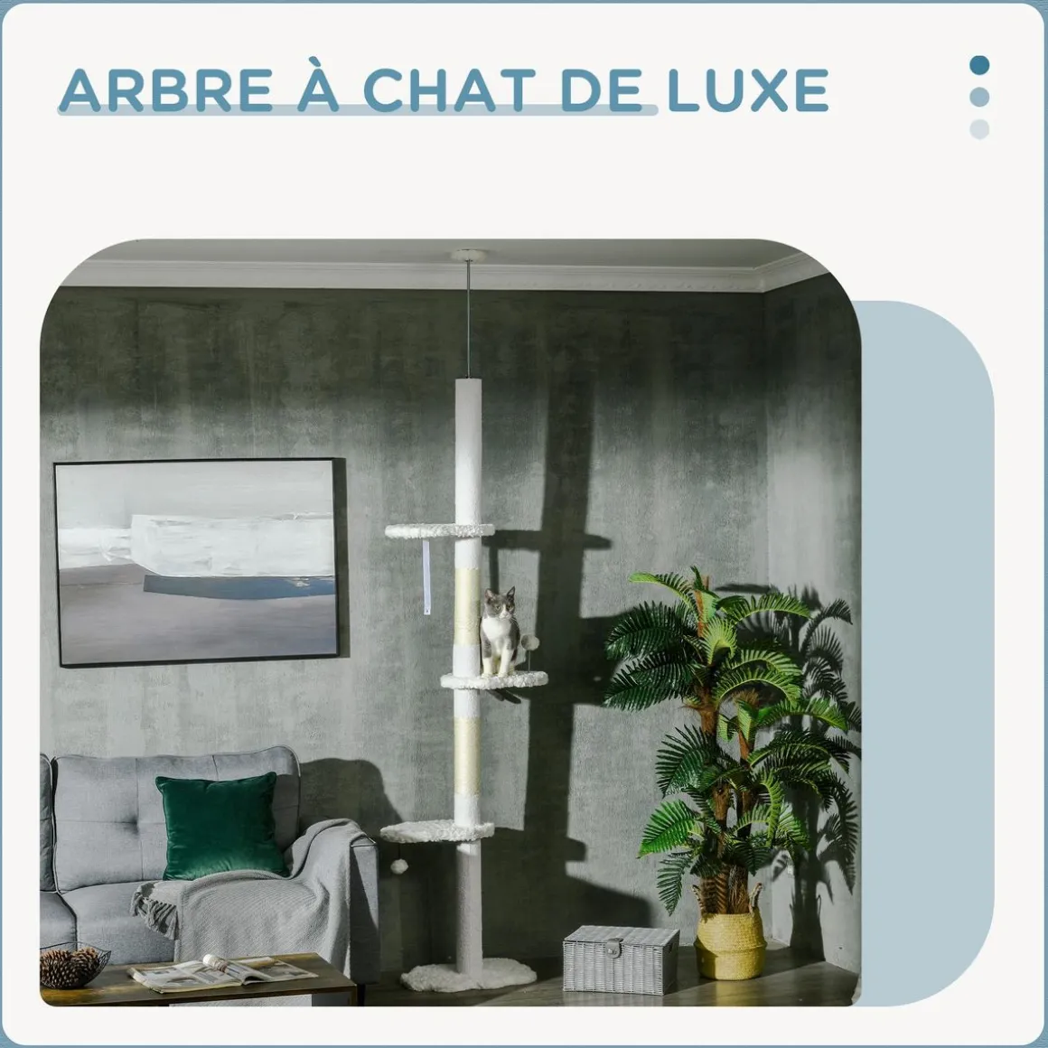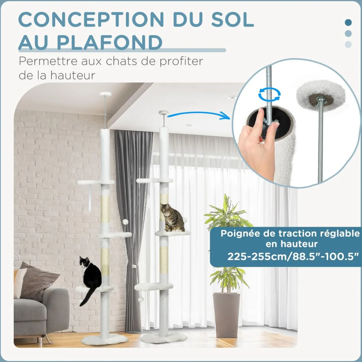 – Griffoir pour chat allant du sol au plafond, réglable en hauteur de 225 à 255 cm