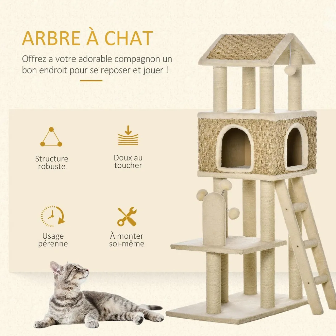 – La conception à 4 niveaux satisfait l’instinct d’escalade de votre chat
