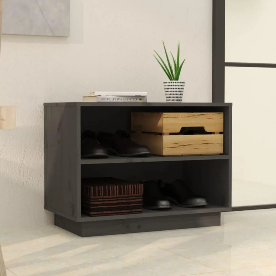 Ce meuble a chaussures en bois constitue une solution de rangement ideale pour votre collection de chaussures preferees.