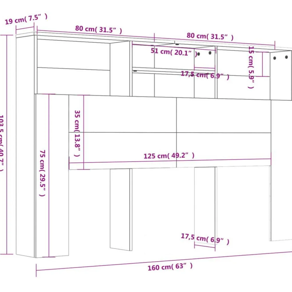 - Dimensions : 160 x 19 x 103,5 cm (l x P x H)