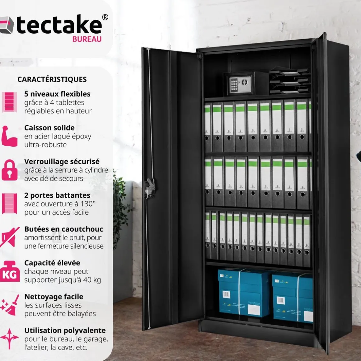 Fabriquée en acier de haute qualité revêtu par poudre, cette armoire métallique est conçue pour durer. La construction robuste assure une durabilité à long terme, même dans les environnements de travail les plus exigeants. Investissez dans un meuble range dossier qui offre à la fois sécurité, flexibilité et une grande capacité de rangement.