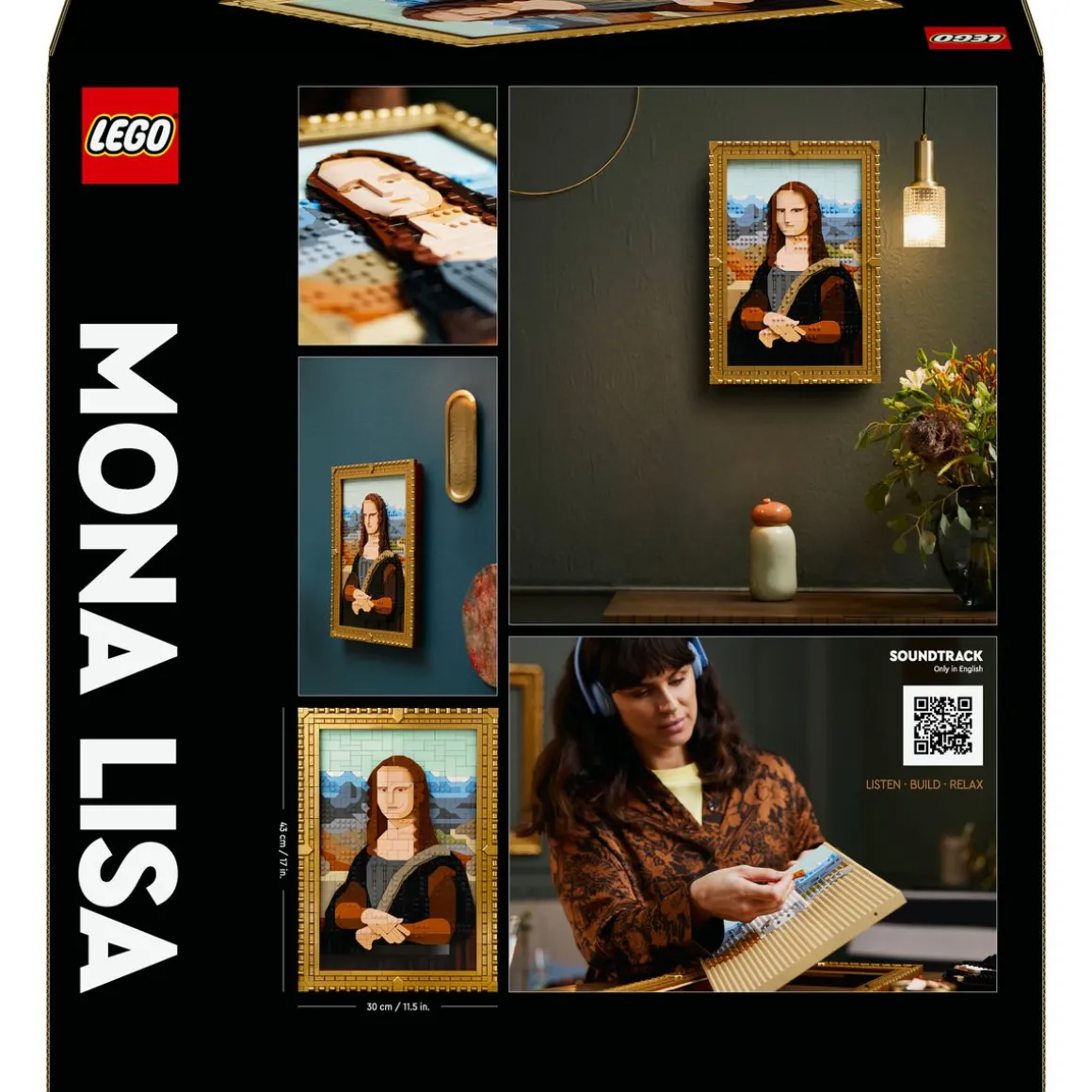 Créez votre propre chef-d’œuvre avec le set de construction LEGO Art La Joconde (31213). Les amateurs d’art savourent la construction de cette interprétation audacieuse et unique de l’œuvre de Léonard de Vinci, seuls ou entre amis.Faites-vous plaisir ou offrez ce tableau à un homme, une femme ou un amateur d’art. L’œuvre arbore le coloris bleuté utilisé il y a plus de 500 ans par de Vinci, avant que sa teinte n’évolue au fil du temps. Les éléments ornés des célèbres yeux de La Joconde peuvent être remplacés par des pièces unies pour un style plus abstrait.Accompagné d’un élégant cadre doré, le tableau de La Joconde est conçu pour être accroché au mur dans un salon ou un bureau, pour un bel objet de décoration. Le cadre est amovible et peut être utilisé pour exposer d’autres modèles LEGO Art d’une collection existante. Les constructeurs de ce set LEGO pour adultes peuvent scanner le code QR se trouvant dans le livret d’instructions inclus pour écouter la bande-son qui regorge d’informations fascinantes sur le charme intemporel de La Joconde.mesure plus de 43 cm de haut, 30 cm de large et 4 cm de profondeurContient 1 503 pièces