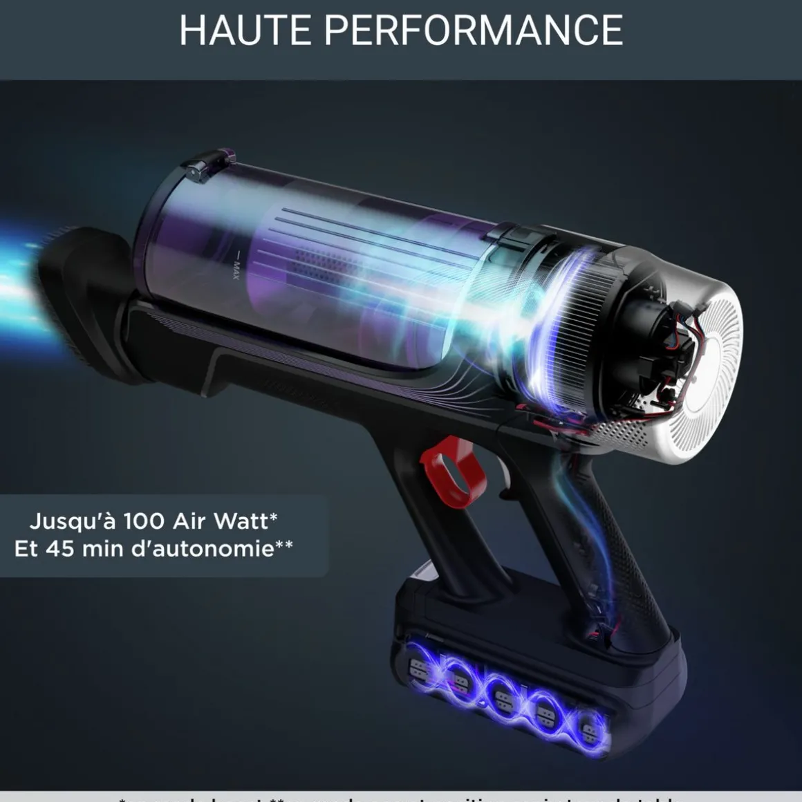 L’aspirateur balai sans fil RH2037WO Rowenta X-Force Flex 9.60 vous facilite le nettoyage. Il combine à la perfection performance et confort d’utilisation grâce à son format ultra-léger (1,1 kg en mode aspirateur à main) et sa grande puissance d’aspiration constante allant jusqu’à 100 Air Watts* pour une efficacité maximale dans le temps. Découvrez une expérience de nettoyage unique améliorée par les technologies propres à Rowenta : le système de tube flexible permettant d’aspirer sous les meubles pour un nettoyage complet sans se pencher, l’écran de contrôle digital, le réglage automatique de la vitesse et de la puissance en fonction du type de sol, et bien plus.