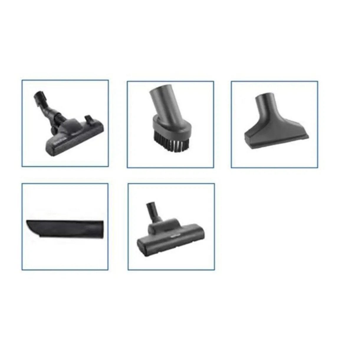 Brosse combiné standard avec accessoires embarqués (embout ventouse, brosse ronde et suceur biseauté). Turbobrosse pour un nettoyage en profondeur des tapis et moquettes.