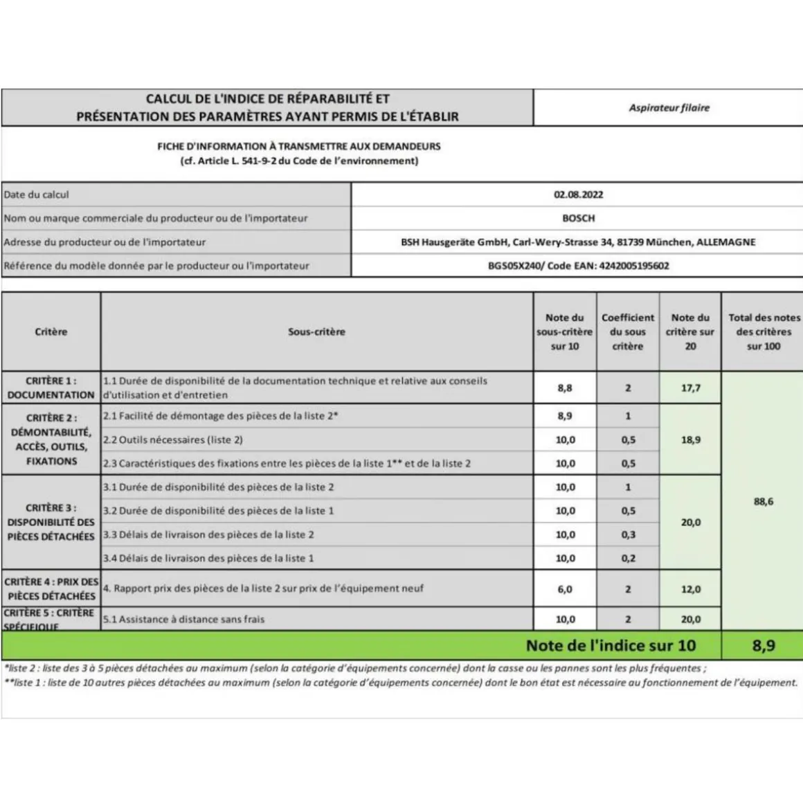 Autre(s) équipement(s) : Poignée ergonomique, Moteur »HiSpin », Rangement du flexible autour de l’appareil.