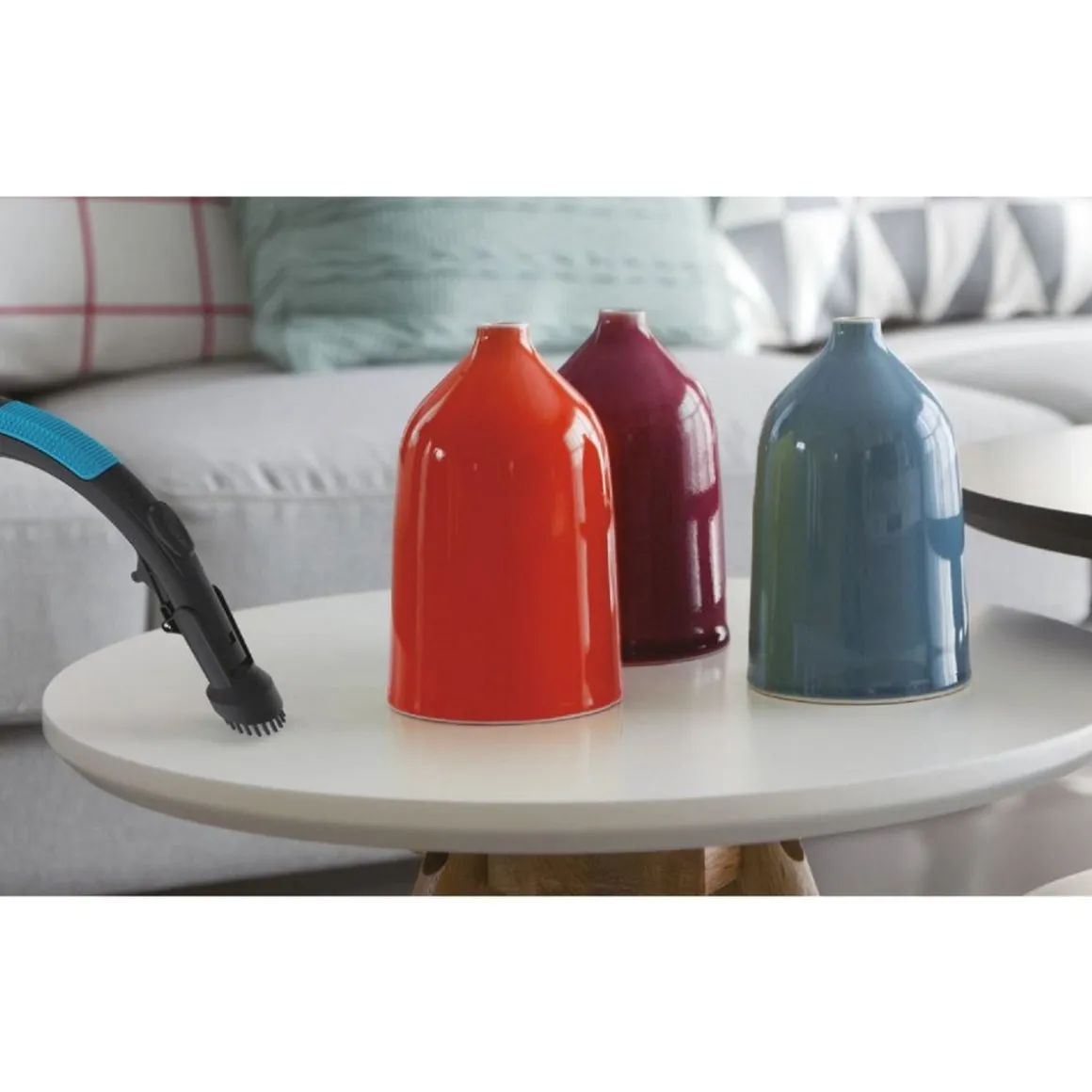 Son rayon d’action de 9 mètres vous permet d’aspirer de grandes surfaces sans avoir à débrancher de la prise électrique durant le nettoyage. L’aspirateur est équipé d’une poignée ergonomique et des roues pivotantes qui ne laissent aucune trace sur vos sols. Il est doté d’un filtre HEPA afin de séparer la poussière de l’air et bénéficier d’un environnement purifié.