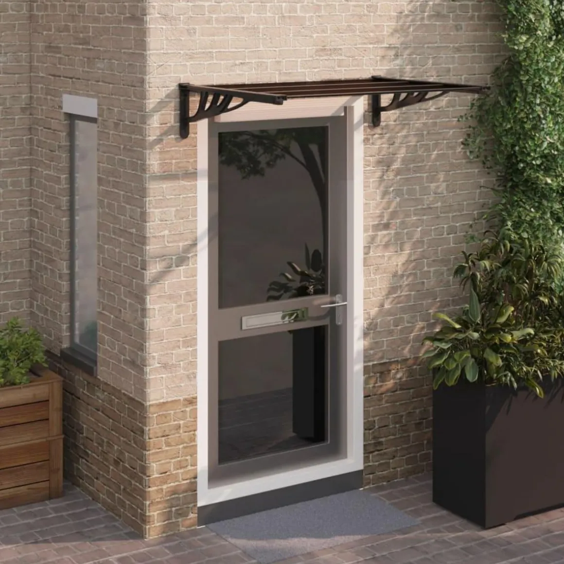 Cet auvent de porte exquis presente une solution simple pour proteger votre porte de la pluie, de la neige, de la grele et d’autres intemperies.