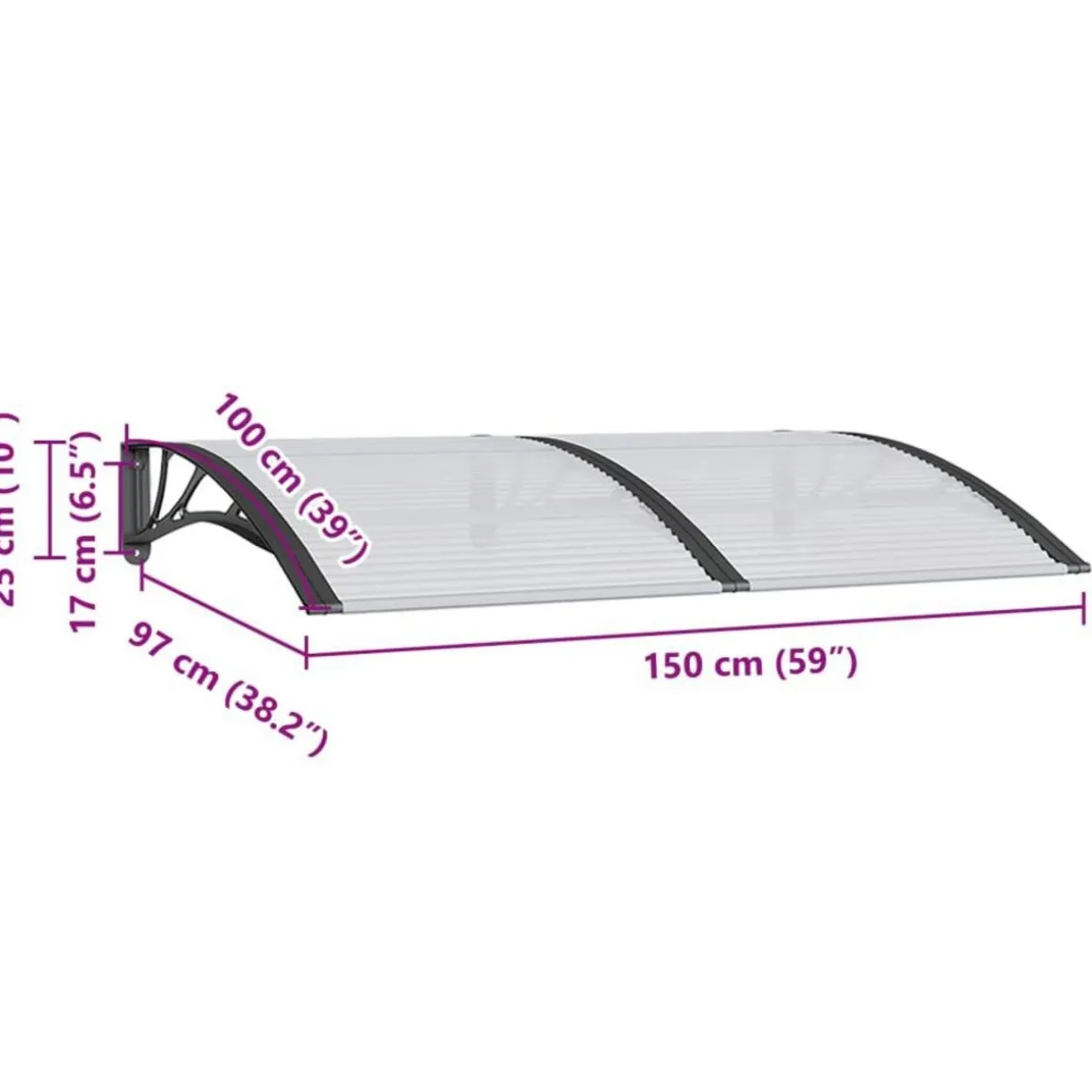 Cet auvent de porte exquis et de haute qualite est une solution facile pour proteger votre porte de la pluie, de la neige, de la grele ou d’autres intemperies.