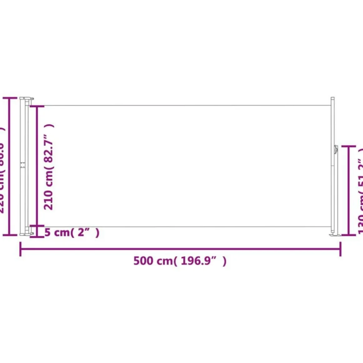 L’ecran est en polyester resistant aux UV, a l’eau et a la dechirure. La cassette est installee sur une base en acier robuste en position verticale, et l’auvent retractable peut etre tire tout droit. L’auvent dispose d’une fonction de retour automatique. La livraison comprend egalement des accessoires de montage.