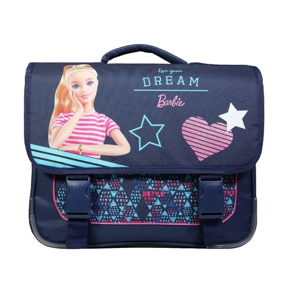 Le cartable Barbie 38cm sera parfait pour que votre enfant passe une bonne rentrée des altes et encore mieux, une bonne année scolaire ! C’est parti pour des journées colorées et pleine de paillettes avec votre poupée préférée! Ce grand cartable avec ses 2 compartiments et sa poche avant permettra à votre enfant d’y ranger sans problème toutes ses fournitures scolaires. Le tout protégé par un rabat fermé avec deux clips. Ses dimensions de 38cm de long, 14cm de large et 34cm de haut sont adaptées pour les altes de primaire. Coloris bleu. 100% polyester. Des bandes réfléchissantes assurent la visibilité de votre enfant sur le chemin de l’école. Nous avons équipé ce cartable d’un dos et de bretelles matelassés ainsi que d’un fond et de coins renforcés. Soyez certain que ce modèle robuste garanti 10 mois ne vous décevra pas.