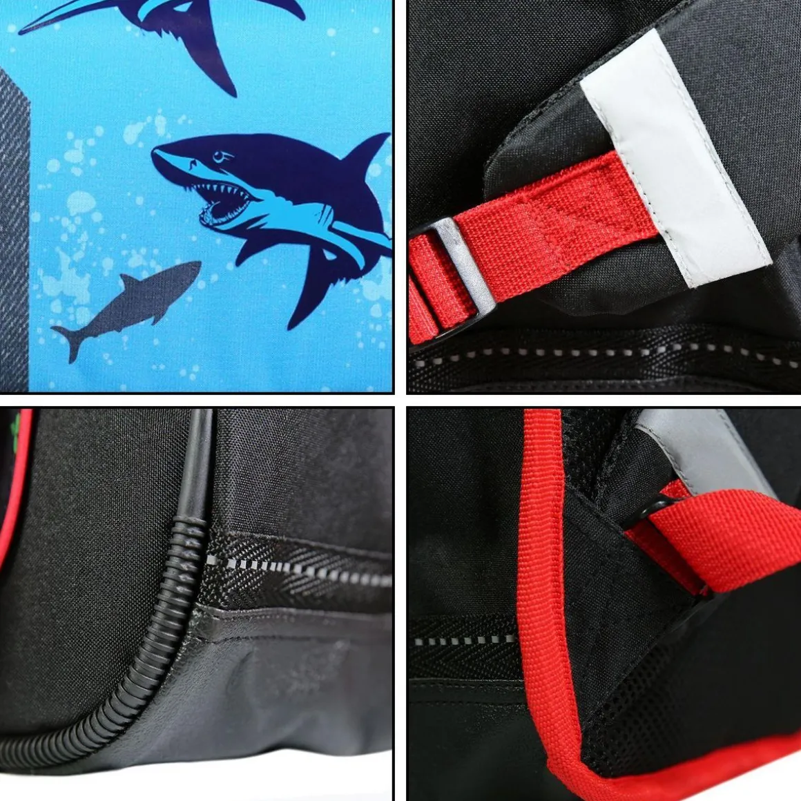 Pour une rentrée scolaire en toute sérénité, Bagtrotter vous propose la bagagerie adaptée ! Ce cartable Vorax 38 cm bleu en polyester assure un confort et une résistance optimale. Ce produit dispose également d’un fond renforcé. Il conviendra parfaitement aux altes de primaire.Il mesure 38 cm de long, 13 cm de large et 34 cm de haut pour un poids de 650 grammes. Ce produit est équipé de deux compartiments ainsi que d’une poche avant sous rabat, ce qui permettra à votre enfant de ranger facilement ses fournitures scolaires.Confortable, ce produit est équipé d’un dos et de bretelles matelassés. Les bretelles sont également ajustables à la taille de son porteur. Les bandes réfléchissantes apposées sur les côtés et les bretelles garantissent une sécurité optimum sur le chemin de l’école.L’univers Vorax débarque sur les produits Bagtrotter ! Le requin est mis à l’honneur sur ce cartable bleu, pour un maximum de frissons