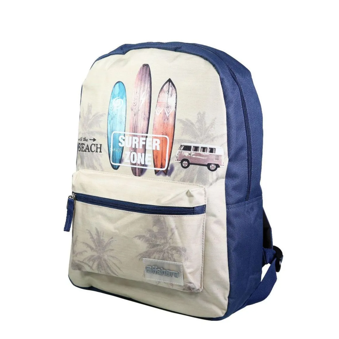 Ce sac à dos multifonction conviendra parfaitement aux altes de primaire et de collège. Celui-ci pourra également être utilisé en sac de loisirs ou sac de sport. Ce sac à dos Offshore 41 cm beige en polyester garantit une solidité absolue grâce à sa matière robuste et durable. Il mesure 29 cm de long, 13 cm de large et 40 cm de haut, pour un poids de 350 grammes. Ergonomique, ce produit dispose d’un compartiment zippé ainsi que d’une poche avant zippée. Un joli sac c’est bien, un joli sac confortable c’est mieux ! C’est pourquoi nous avons équipé ce produit de bretelles et d’un dos matelassés. Les bretelles sont également ajustables à la taille de son porteur. Il y a comme un air de vacances par ici ! Ce sac à dos beige Offshore garanti 2 ans ravira les rois de la glisse avec ses planches de surf et ses superbes palmiers.