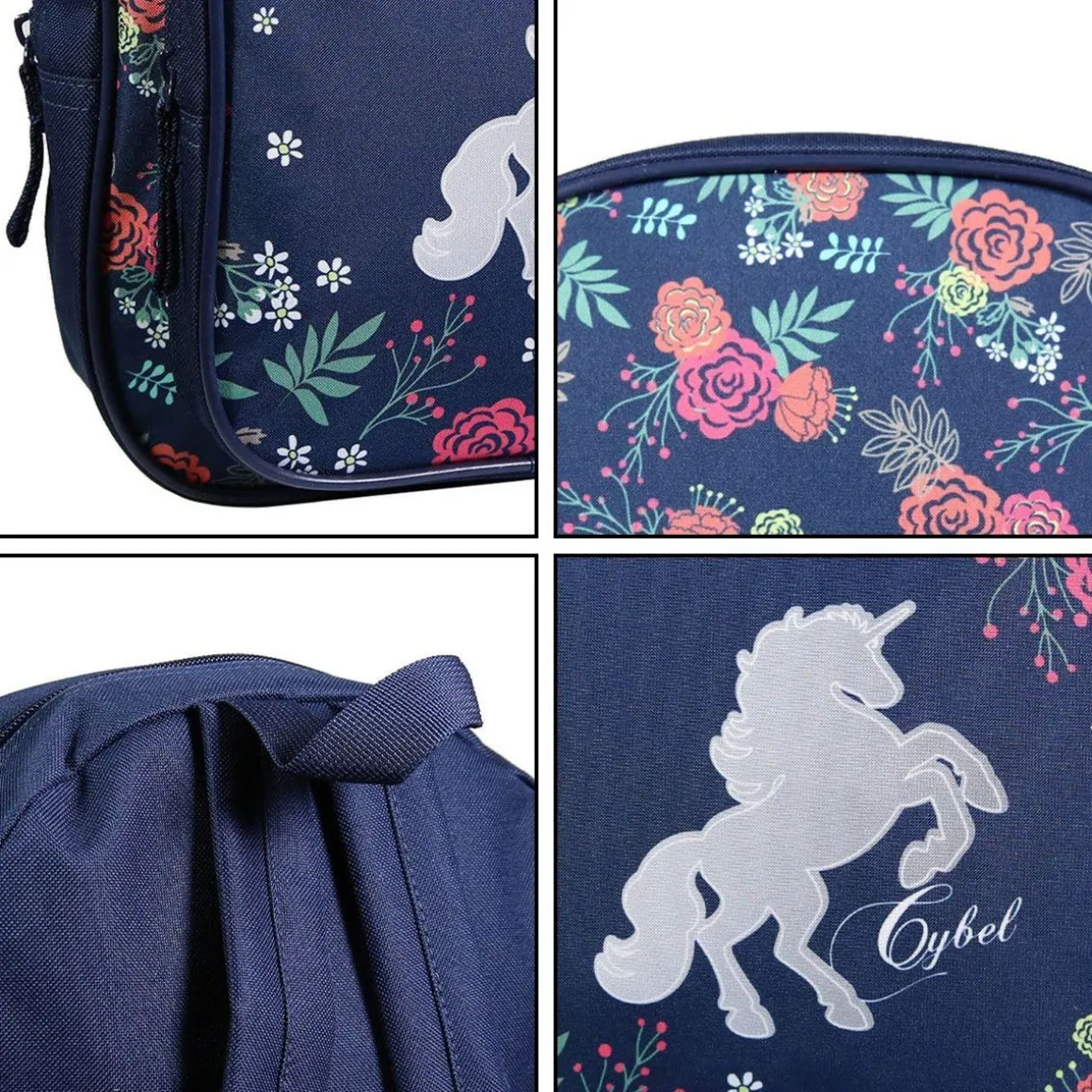 La sac à dos Cybel et son cheval licorne accompagneront votre enfant pour une rentrée des altes féérique et enchantée.Ce sac à dos Cybel 31 cm en polyester bleu marine conviendra parfaitement aux petits bouts de maternelle. Très robuste, il sera infaillible face à l’usure.Ce sac à dos mesure 24 cm de long, 8 cm de large et 31 cm de haut, pour un poids de 210 grammes. Son compartiment zippé et sa poche avant zippée lui permettront de ranger ses fournitures scolaires ainsi que ses petits secrets ! Ce produit assure un confort sans faille avec ses bretelles réglables. Fonctionnalité et légèreté, voici les maîtres-mots de ce produit ! Entrez dans l’univers utopique de Cybel avec son cheval licorne magique et son design fleuri multicolore. Vous disposez d’une garantie de 2 ans sur ce produit !